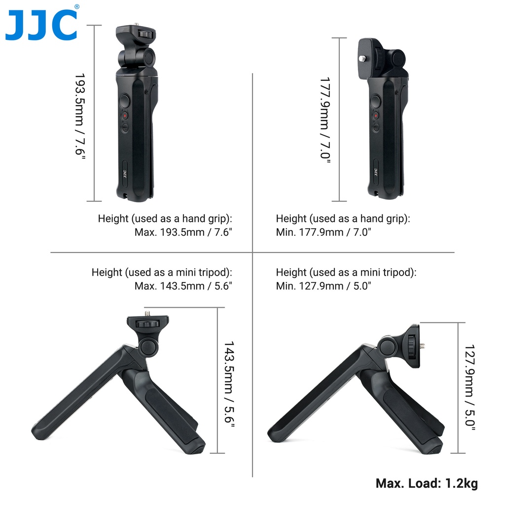 JJC 3-in-1 Tripod Hand Grip กริ๊ปถ่ายภาพ, ไม้เซลฟี่, ขาตั้งกล้องขนาดเล็กที่มีรูเกลียว 1/4″-20, เหมาะสำหรับกล้องแอคชั่นแคมเมรา Gopro, Sony RX100, Ricoh GR, กล้อง Canon G7X Series, สมาร์ทโฟน ฯลฯ