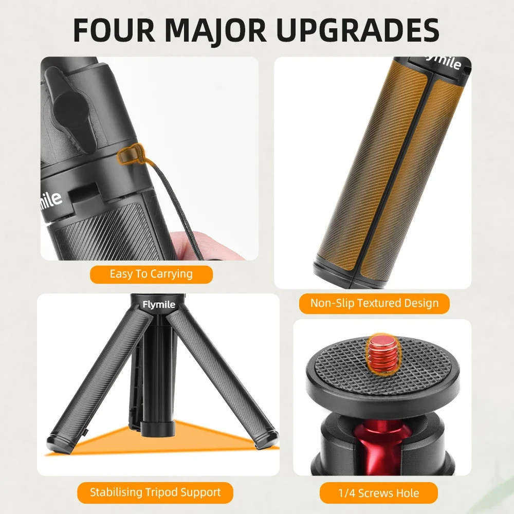 Flymile รีโมทคอนโทรล Vlog Selfie Stick ขาตั้งกล้องสําหรับ DJI Action 5 Pro/Gopro 13 Hero/กระเป๋า 3/Insta360 X5/X4 กล้องขาตั้งกล้องแบบพกพาและ Extension Rod อุปกรณ์เสริม