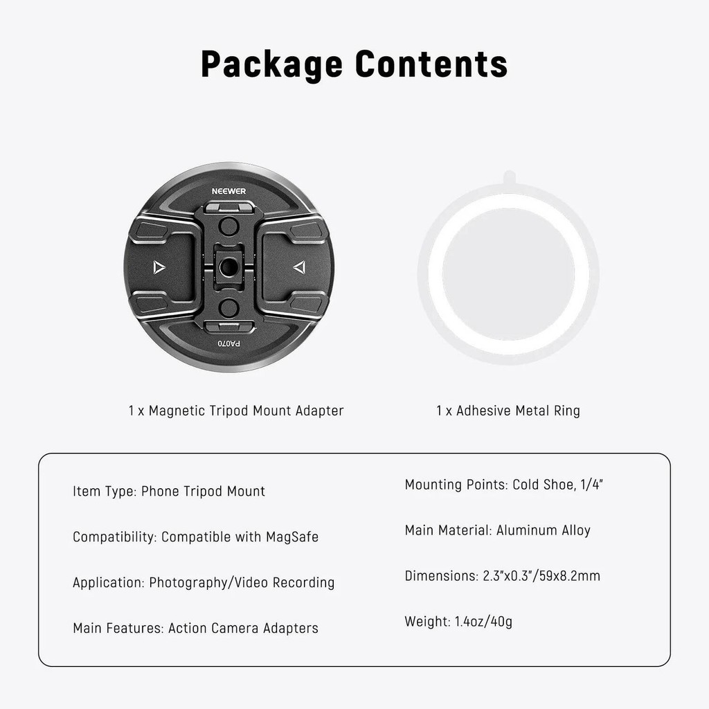 Neewer โทรศัพท์แม่เหล็กขาตั้งกล้องพร้อมอะแดปเตอร์กล้องแอคชั่นแคมเมราสําหรับ MagSafe iPhone 16 15 14 13 12 Quick Release Adapter Mount