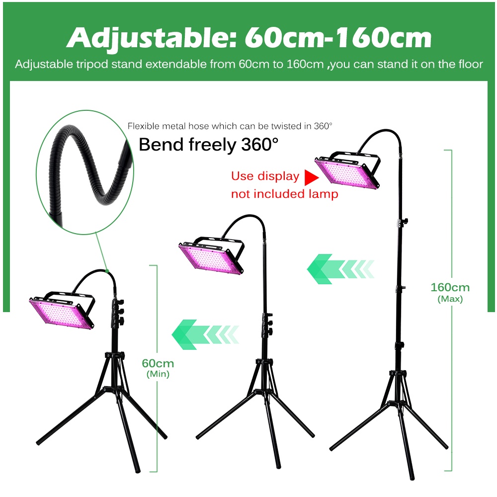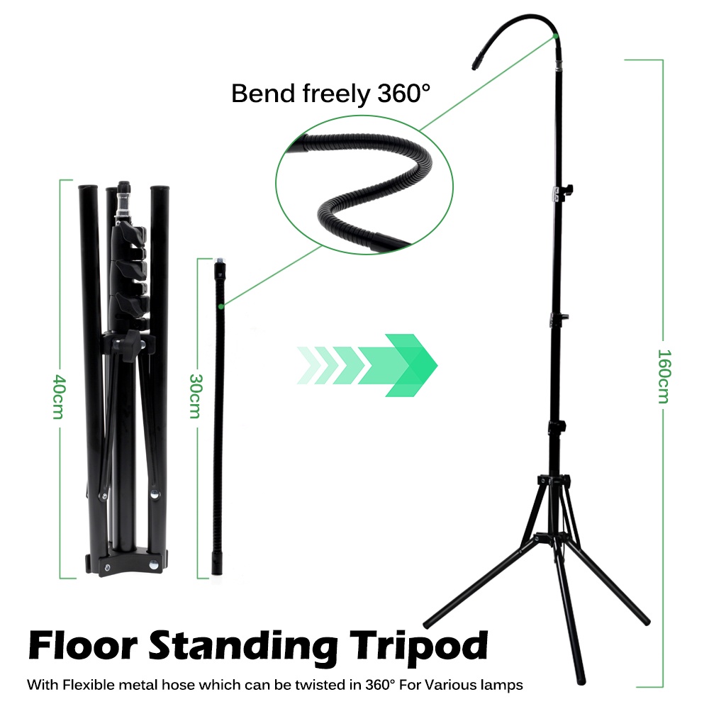 โลหะขาตั้งกล้อง LED Grow Light อุปกรณ์เสริม Floodlight ขาตั้งขาตั้งกล้องโลหะท่อ Bend ได้อย่างอิสระ 360 องศาปรับ 60-160 ซ
