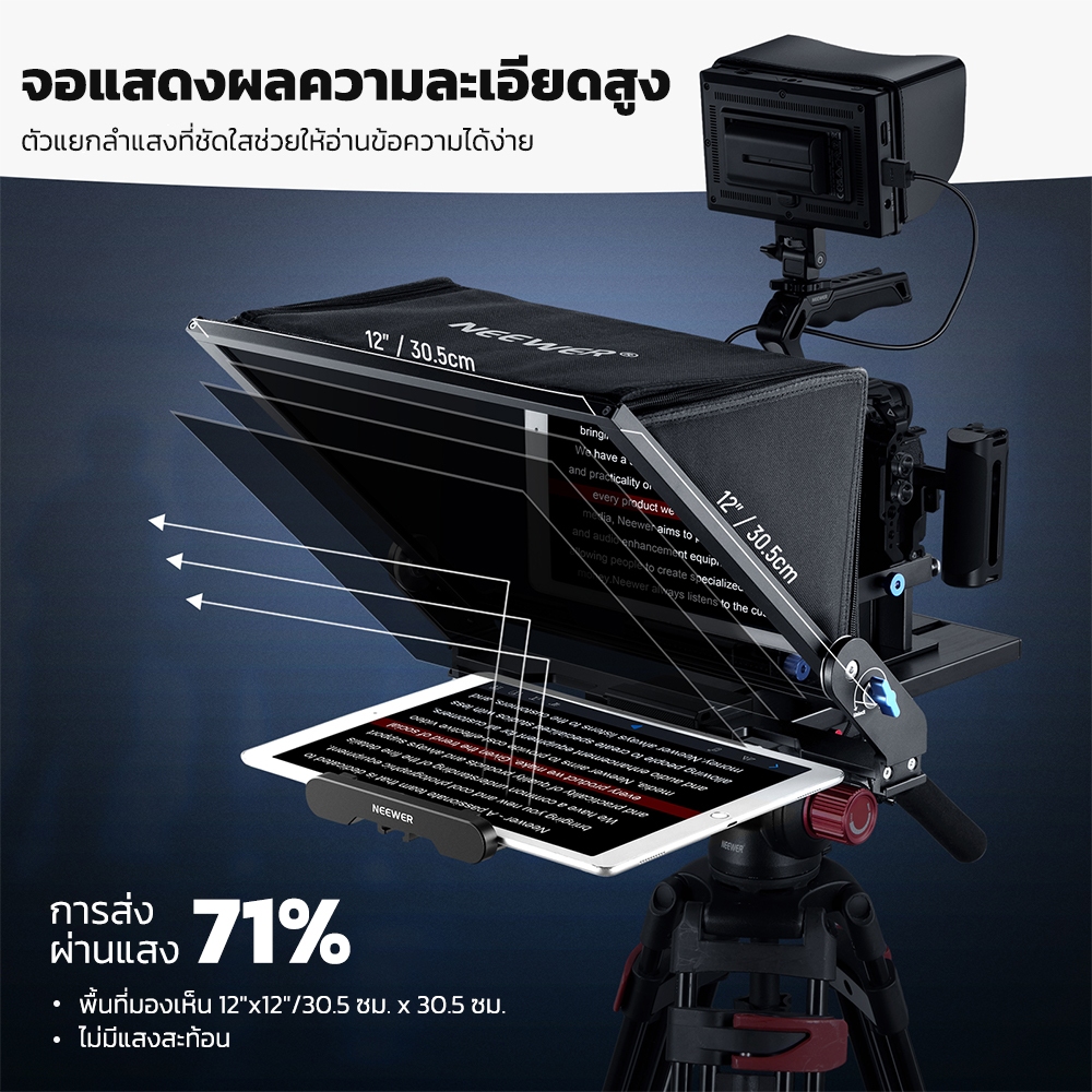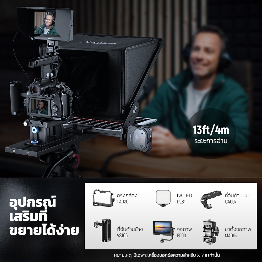 NEEWER X17 II Teleprompter พร้อมการควบคุมแอประยะไกลและแผ่น QR 501PL