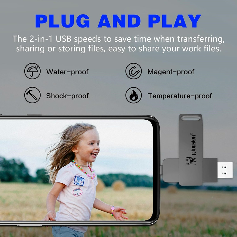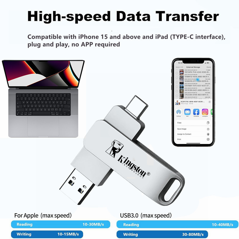 Kingston Pendrive USB Stick Key USB แฟลชไดรฟ์ 512GB 1TB โลหะ TYPE-C เข้ากันได้กับ iPhone15/16/17