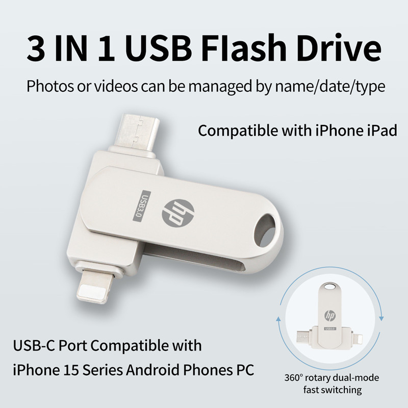Hp 1TB 2TB USB-C แฟลชไดรฟ์ 2 in 1 OTG USB แฟลชไดรฟ์ 512GB Pendrive สําหรับ iPhone16/15/14/13/12/11/X/8/7/6 Android PC