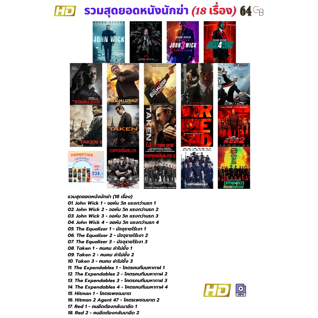 Flash Drive รวมสุดยอดหนังนักฆ่า Top Box office ทำรายได้สูงที่สุดมาแล้วทั่วโลก (18 เรื่อง)