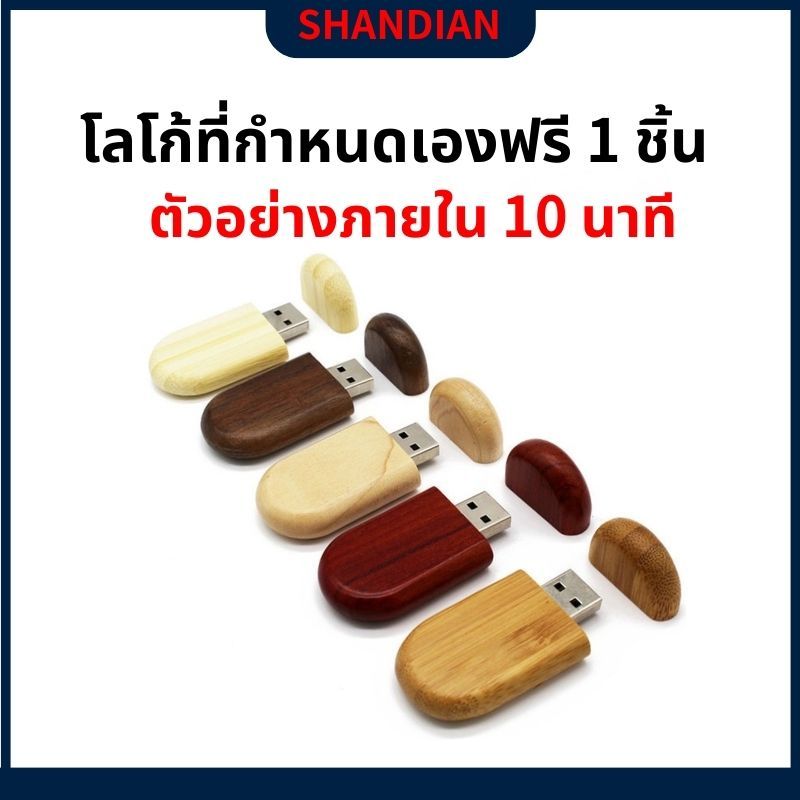SHANDIAN โลโก้ที่กำหนดเอง USB แฟลชไดรฟ์ USB2.0 4GB 16GB 32GB 64GB รูปวงรีไม้ flashdrive