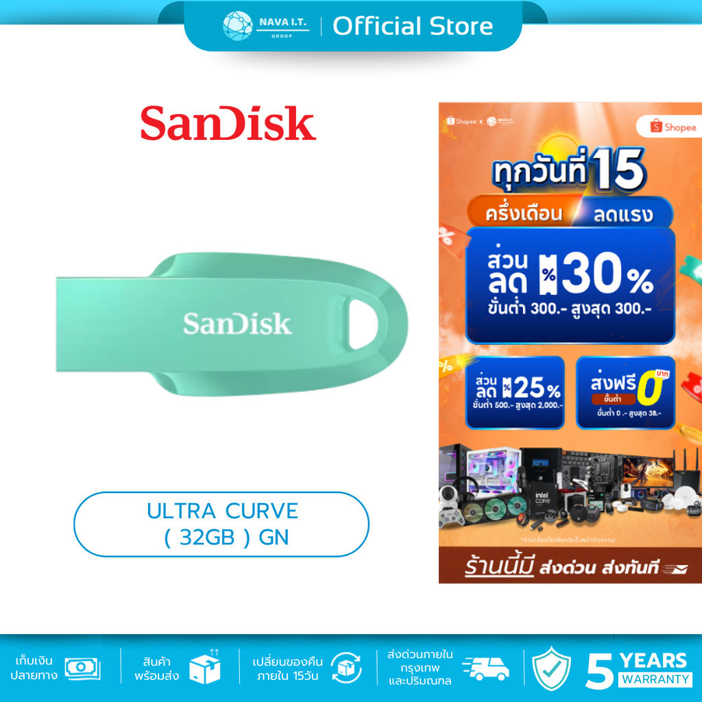 SanDisk Ultra Curve 32GB USB 3.2 Gen 1 Green (SDCZ550-032G-G46G) warranty 5 years