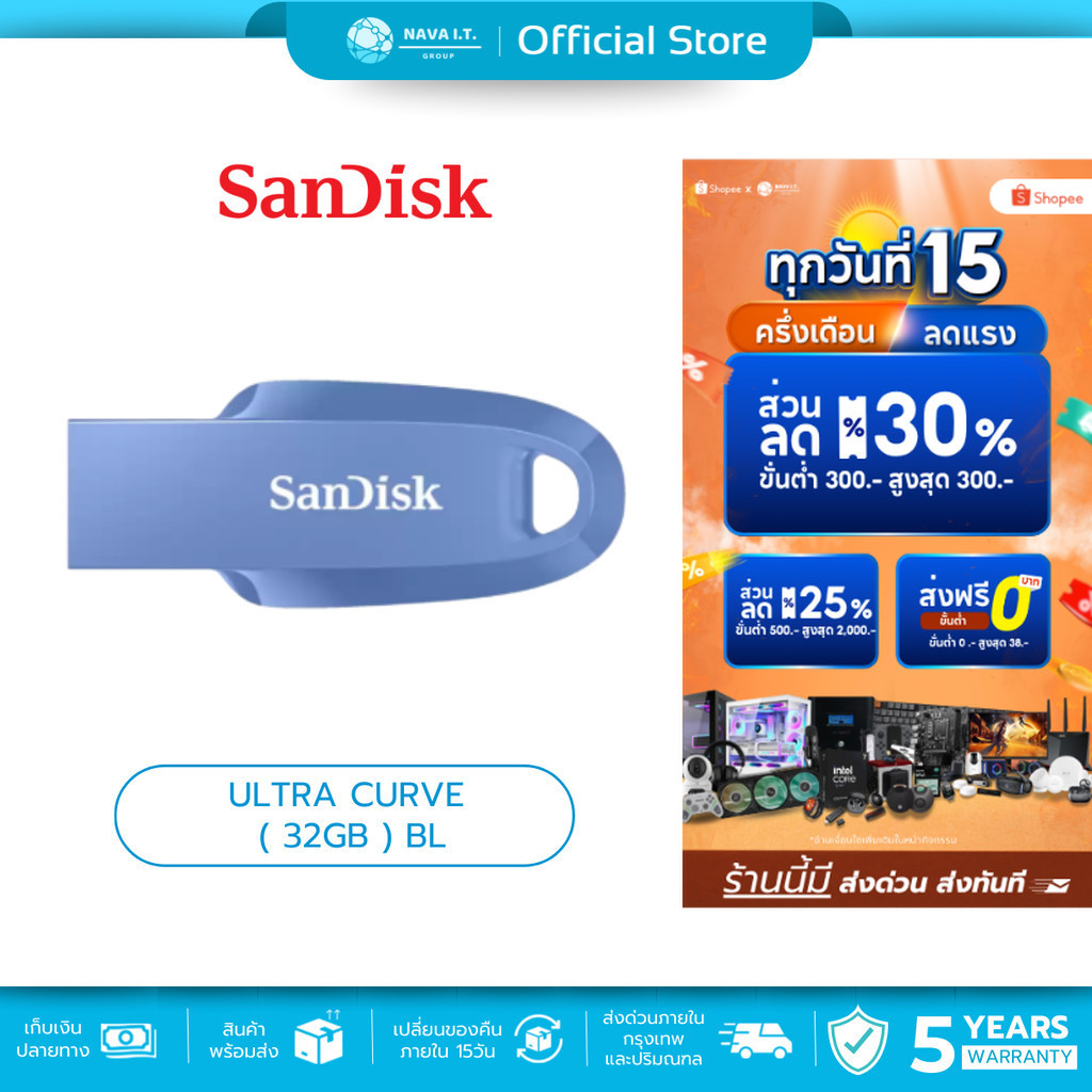 SanDisk Ultra Curve 32GB USB 3.2 Gen 1 Blue (SDCZ550-032G-G46NB) warranty 5 years