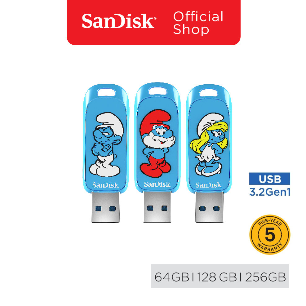 SanDisk Smurfs™ USB Flash Drive 64GB 128GB 256GB (SDCZIS-xxxG-G46)