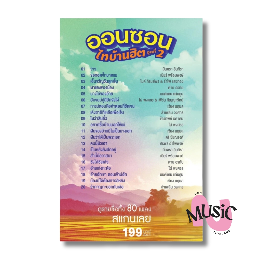 USB ลูกทุ่ง ออนซอน ไทบ้านฮิต ชุดที่2 MP3 แกรมมี่ แฟลชไดร์ฟ GMM MUSIC :80เพลง