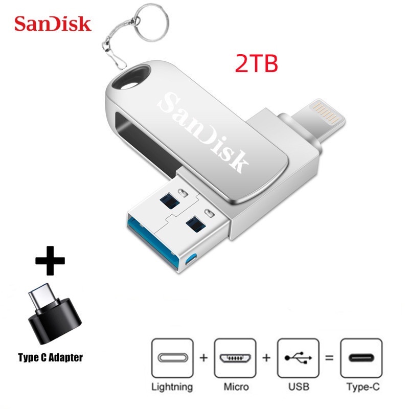 แฟลชไดรฟ ์ 2TB 4-in-1 USB 3.0 หน ่ วยความจํา stick 1TB/512GB/256GB/128GB OTG Pendrive Fast Speed Type-C สําหรับโทรศัพท ์ /PC/i/o/s