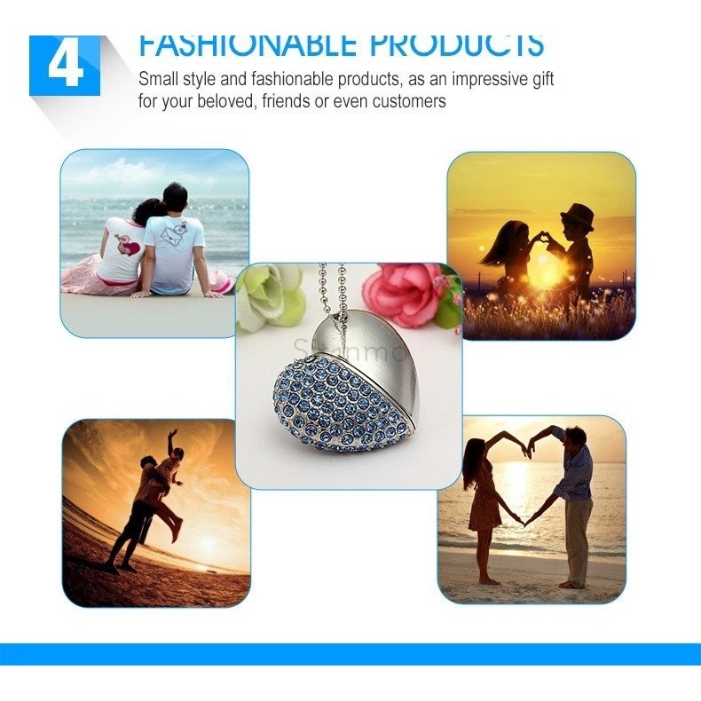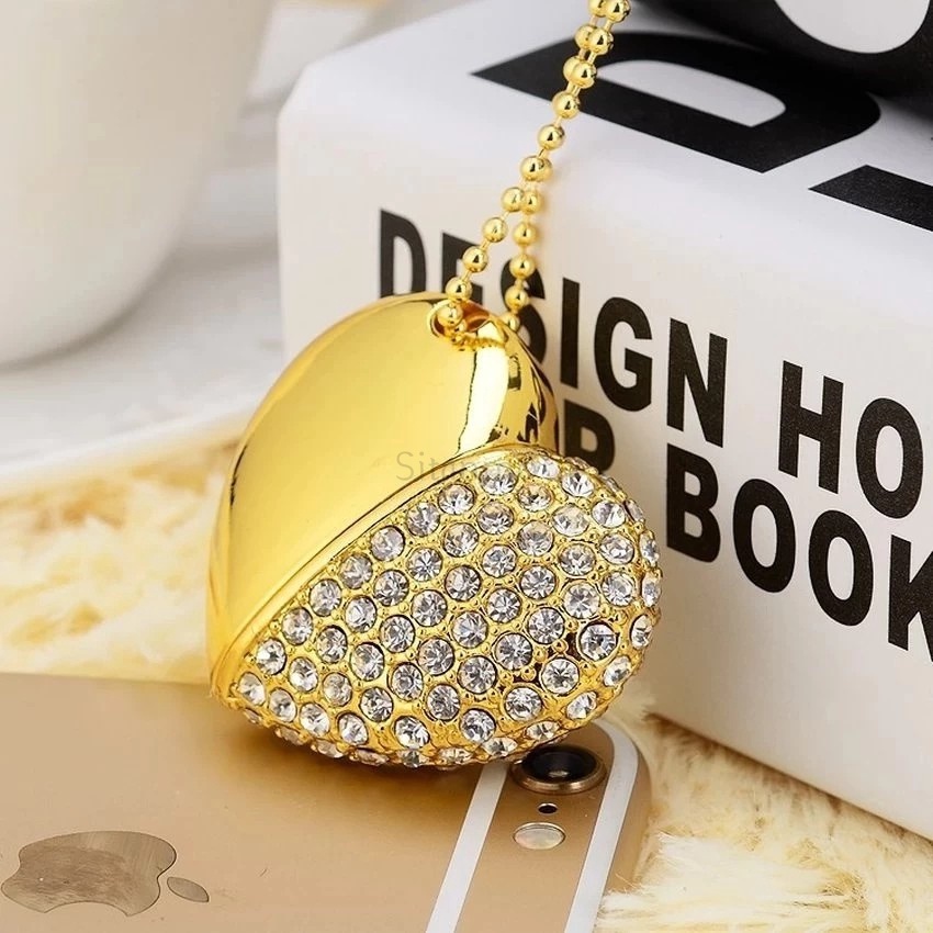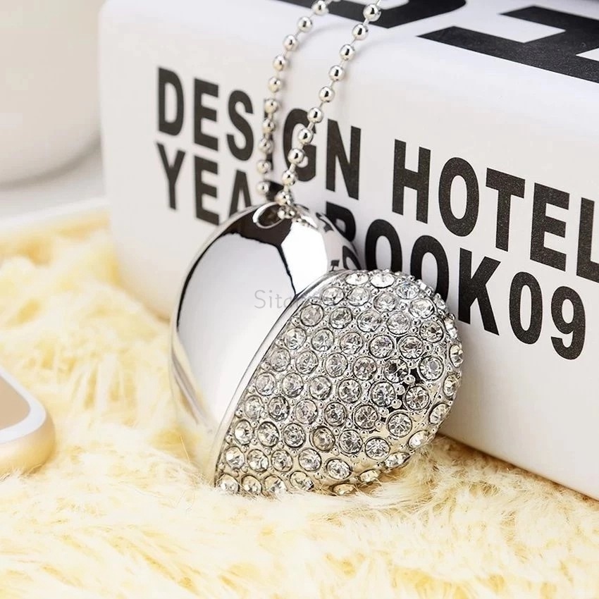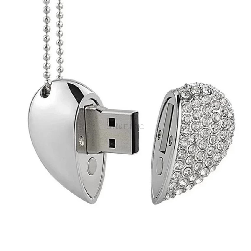 แฟลชไดรฟ์ USB 2TB 1TB 128GB 64GB 32GB 16GB 8GB 1GB โลหะ เพนไดรฟ์ คริสตัล เพชร พร้อมสร้อยคอ ของขวัญ