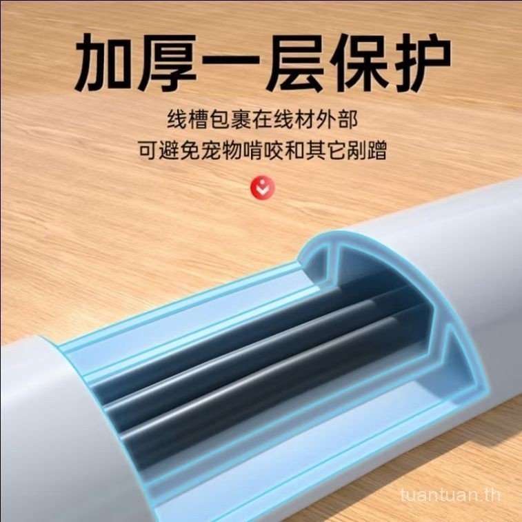 [3เมตร] รางเดินสายสายไฟแบบมีกาวในตัวสายไฟรางจัดการสายไฟแบบเปิดสายไฟพื้นป้องกันการเหยียบฉนวนพีวีซีวิเศษรางรูปตัวยู