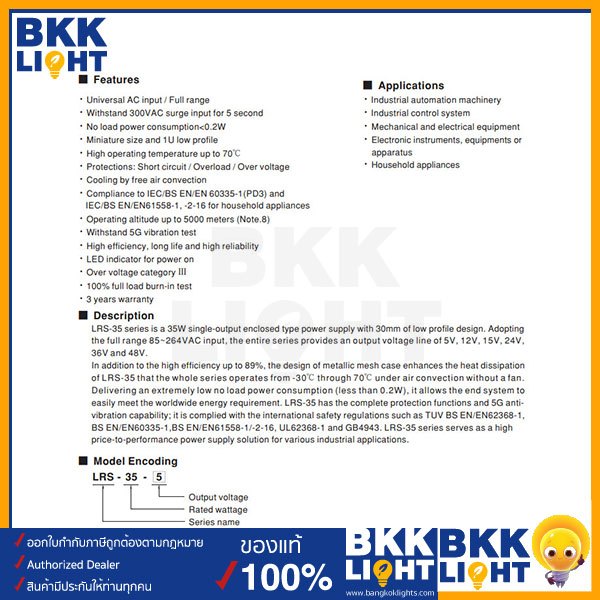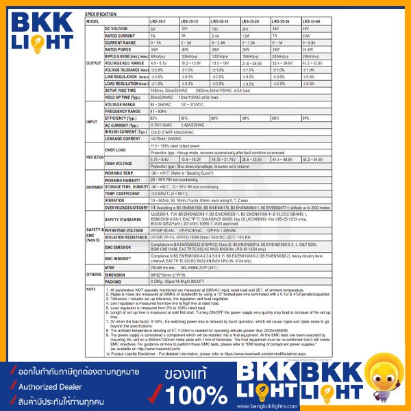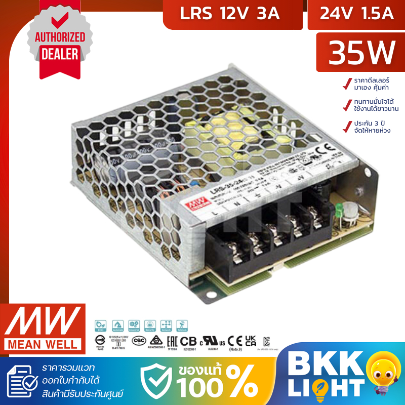 (ประกัน 3 ปี) Meanwell หม้อแปลง LRS 35วัตต์ 12V สวิทชิ่ง Mean Well 3A 35W