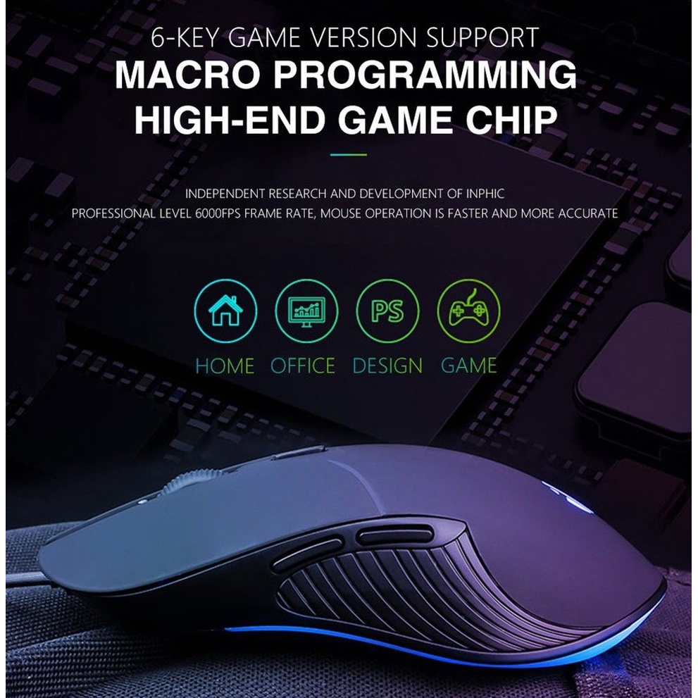 Gaming Mouse inphic เมาส์เล่นเกม เมาส์ไร้เสียง Mouse ไร้เสียง 6ปุ่ม DPI 4800 พร้อมส่ง