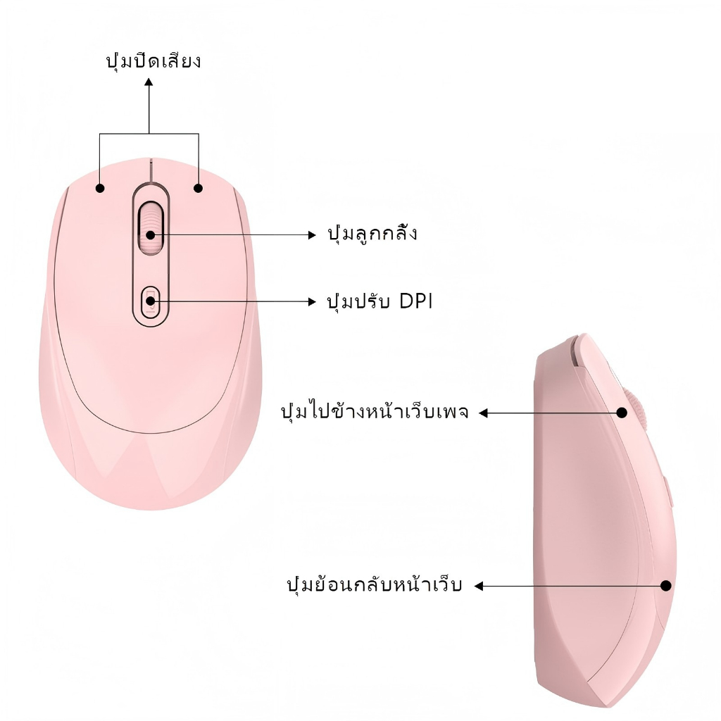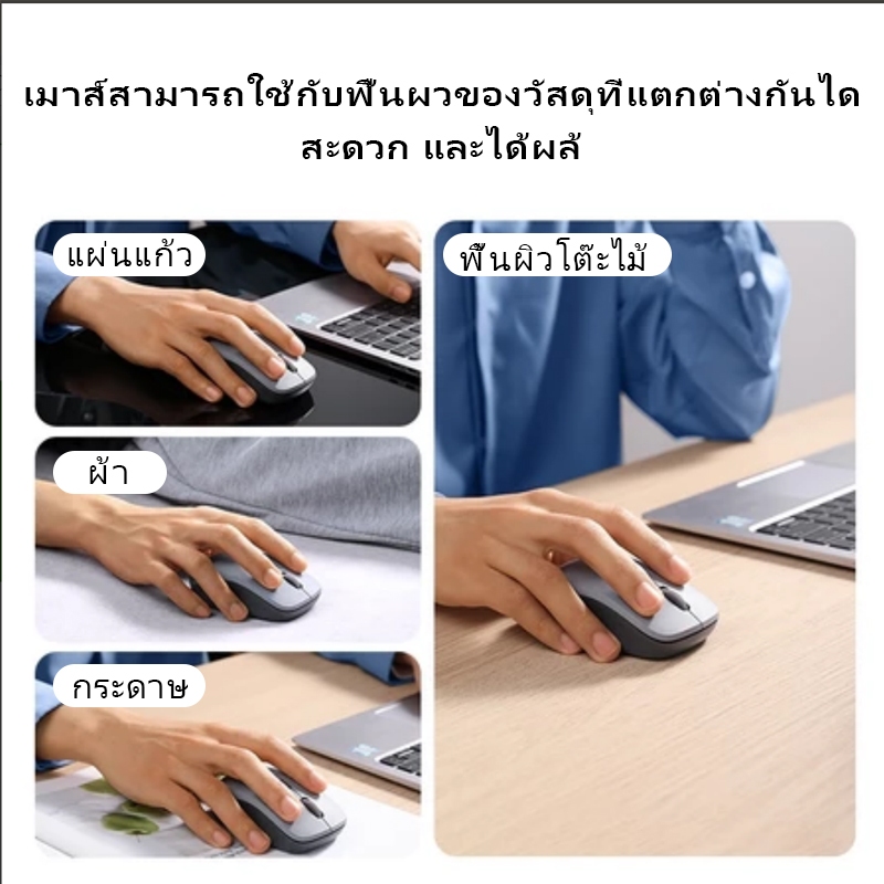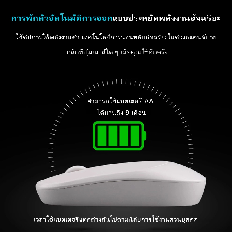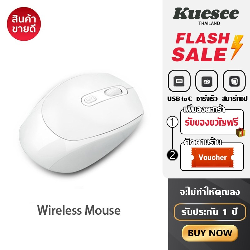 Kuesee เมาส์ไร้สาย 4 ปุ่มเสียงเงียบ Wireless Mouse 2.4G USB 1600DPI พร้อมตัวรับสัญญาณ【PC / Mac】