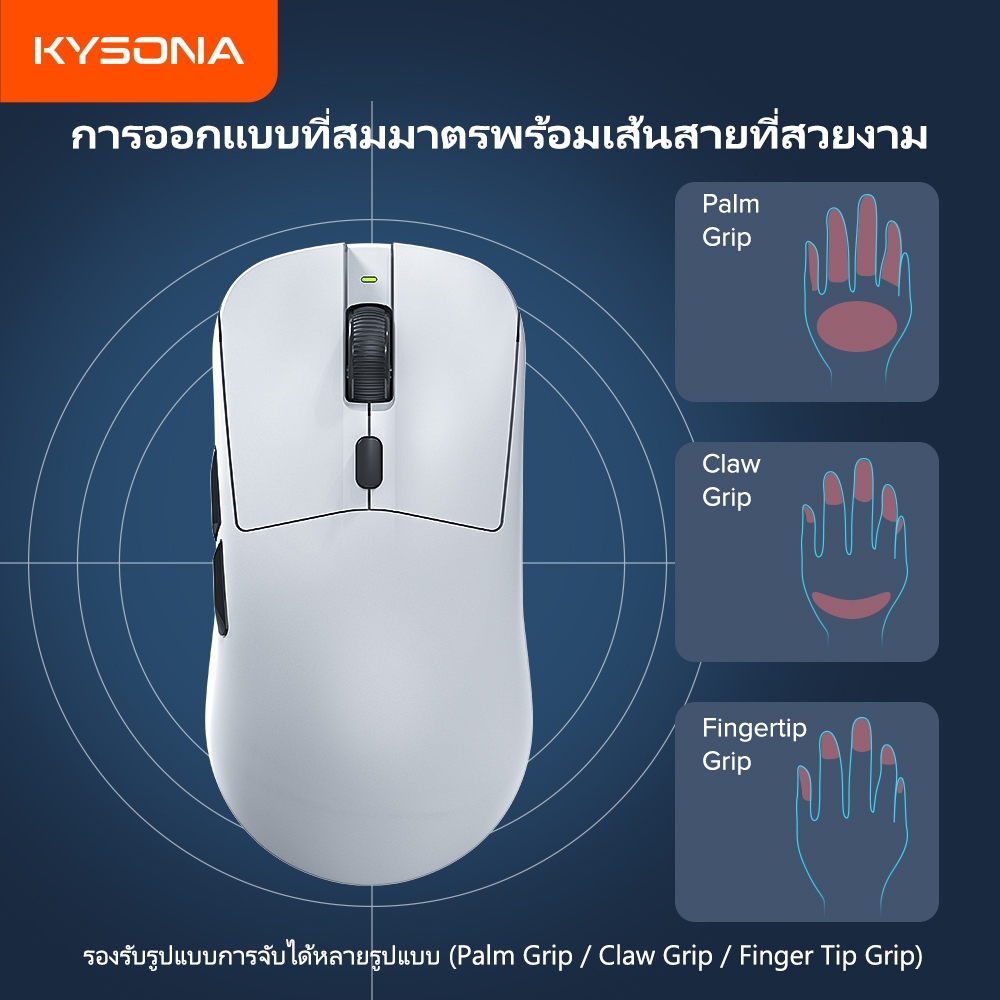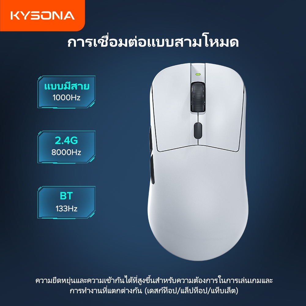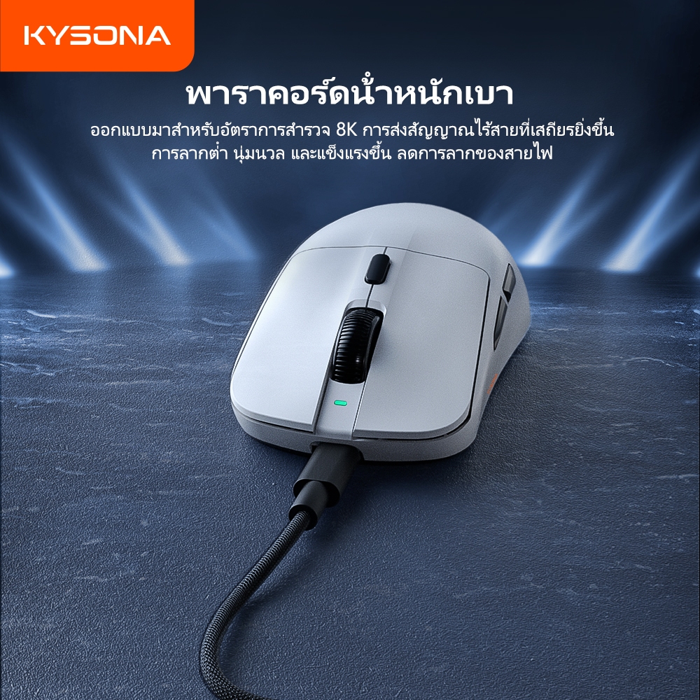 KYSONA M617 8K Gaming Mouse ไร้สาย PAW3395 Max 26000 DPI 100 ชม.อายุการใช้งานแบตเตอรี่ยาวนาน PTFE เมาส์ฟุต