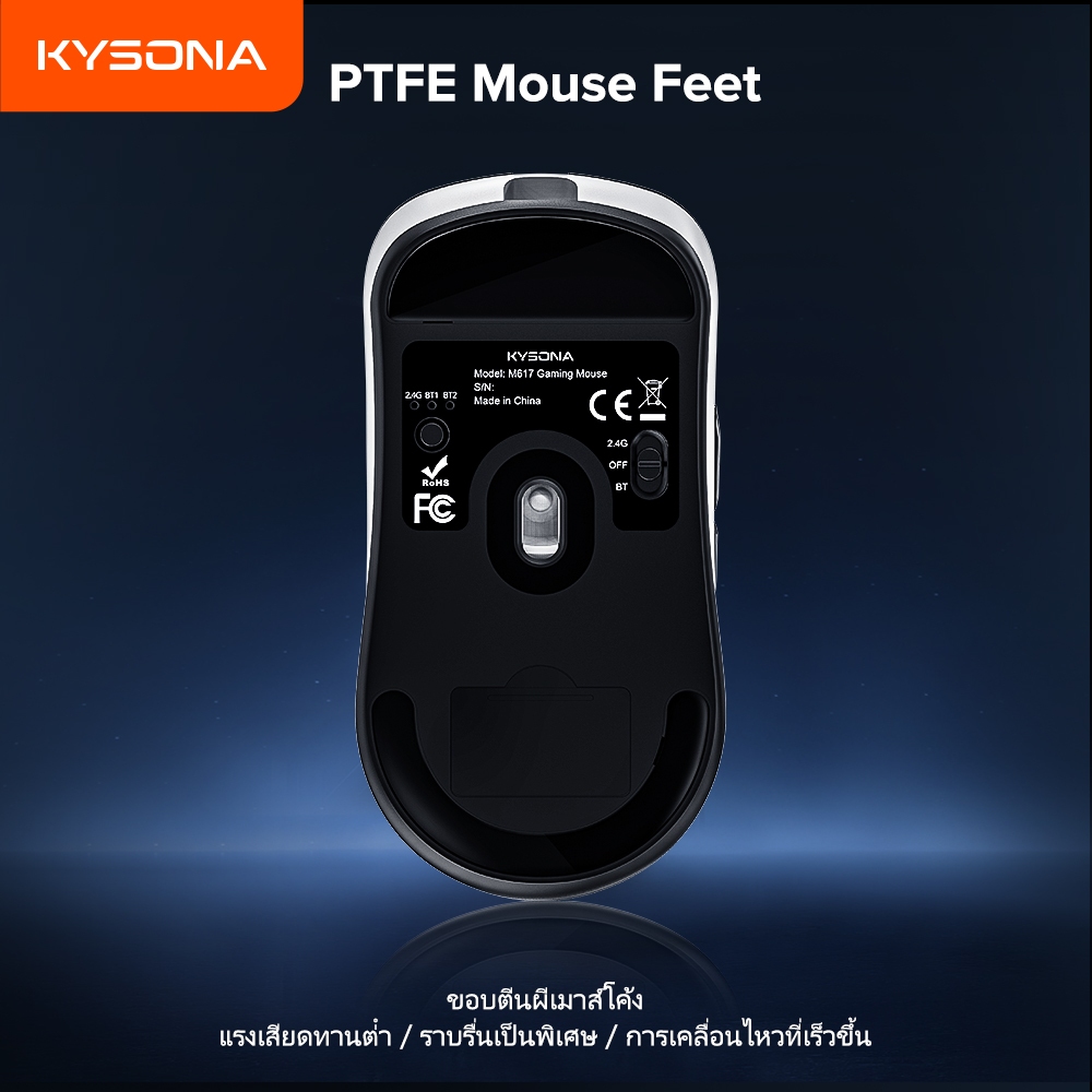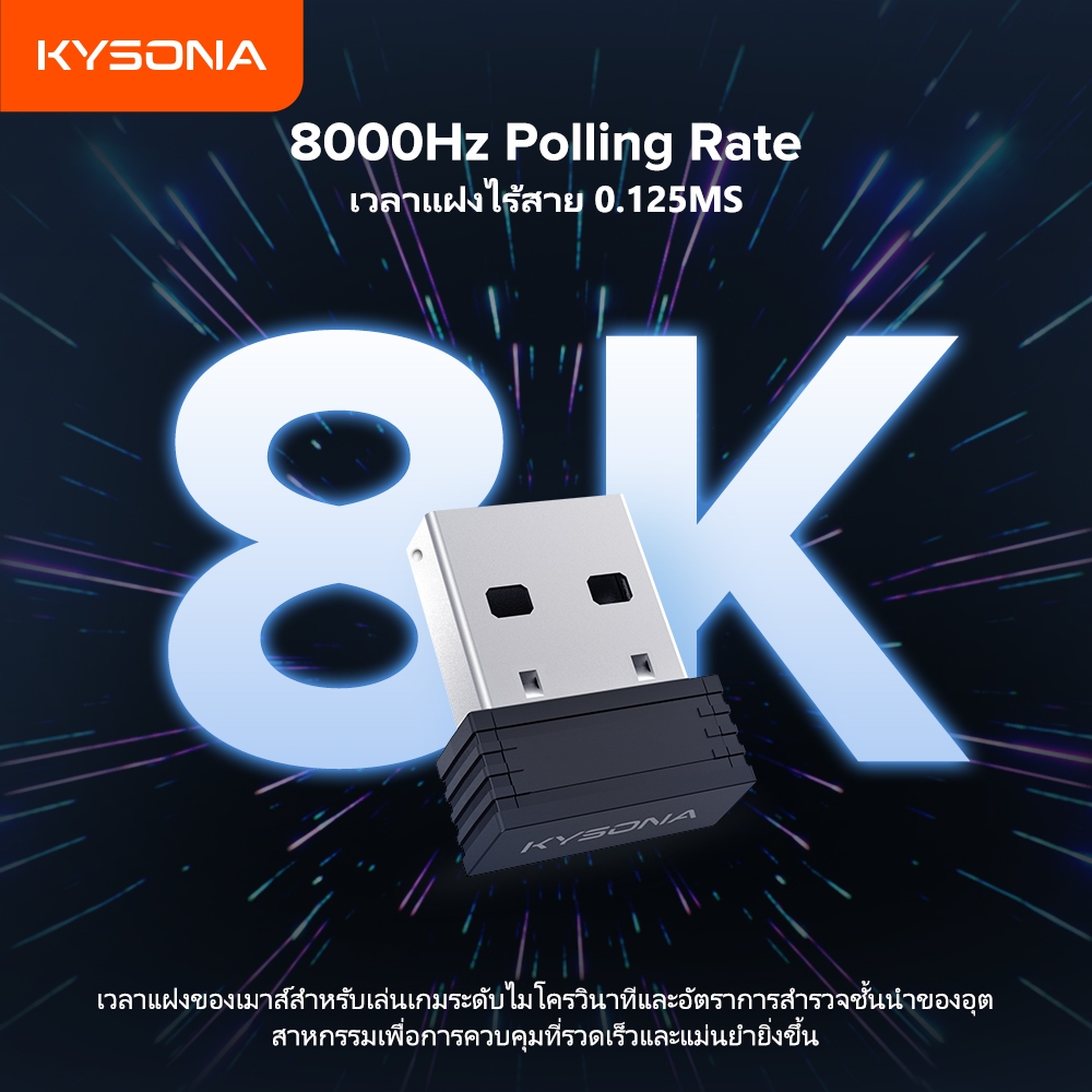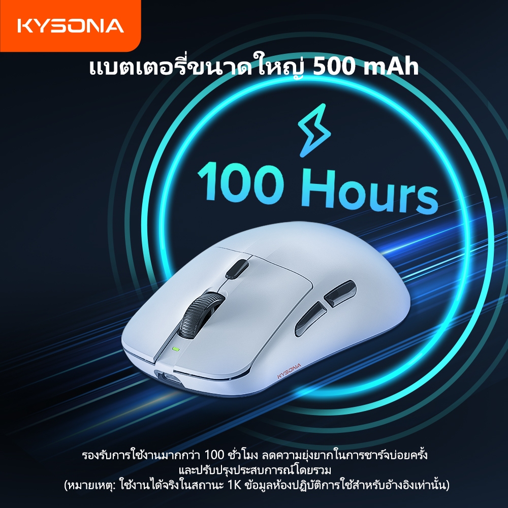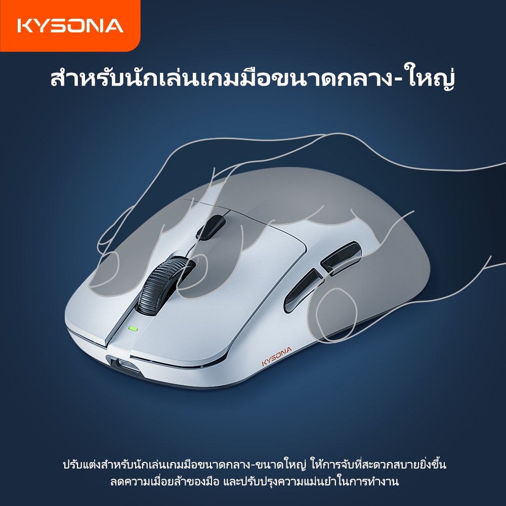 KYSONA M617 8K Gaming Mouse ไร้สาย PAW3395 Max 26000 DPI 100 ชม.อายุการใช้งานแบตเตอรี่ยาวนาน PTFE เมาส์ฟุต