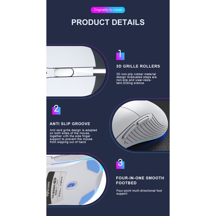 Jomaa เมาส์เล่นเกมไร้สาย บลูทูธ 2.4G มีไฟแบ็คไลท์ RGB ตามหลักสรีรศาสตร์ สําหรับแล็ปท็อป Mac iPad Gamer