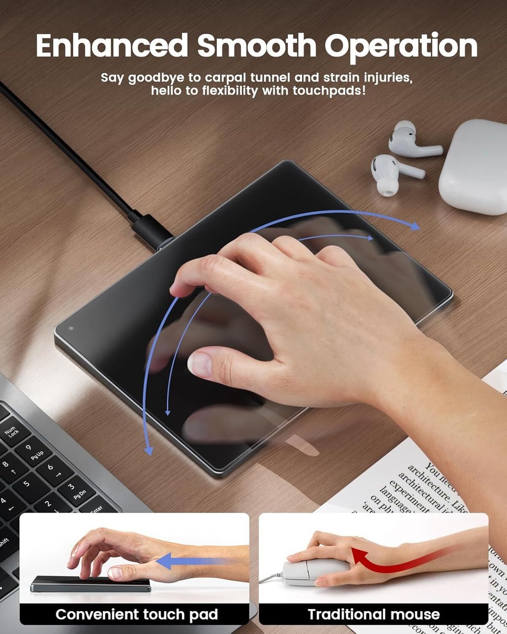 Jomaa อัพเกรด Trackpad Touch Mouse พื้นผิวแก้วเรียบ Multi-Touch, อลูมิเนียม Slim USB แบบมีสาย MouseTouchpad สําหรับ Windows คอมพิวเตอร์
