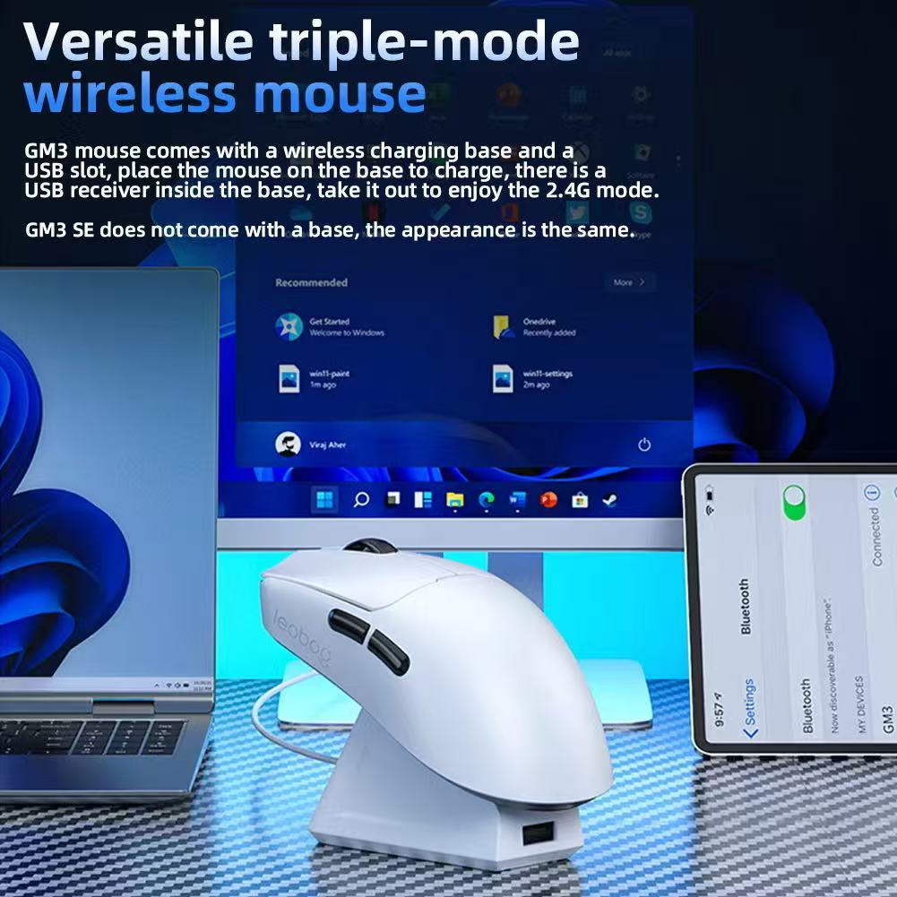 LEOBOG GM3 GM3SE เมาส์ไร้สายแสงอัลตร้า 500mAh ระดับแบตเตอรี่ 6 DPI Tri-Mode รองรับสําหรับเกมสํานักงาน
