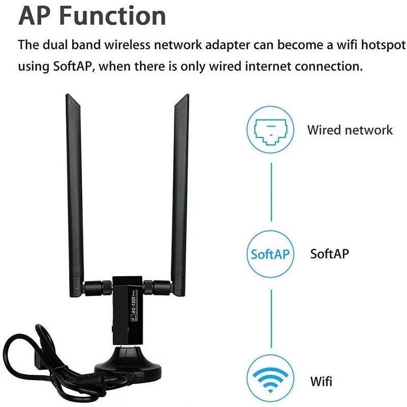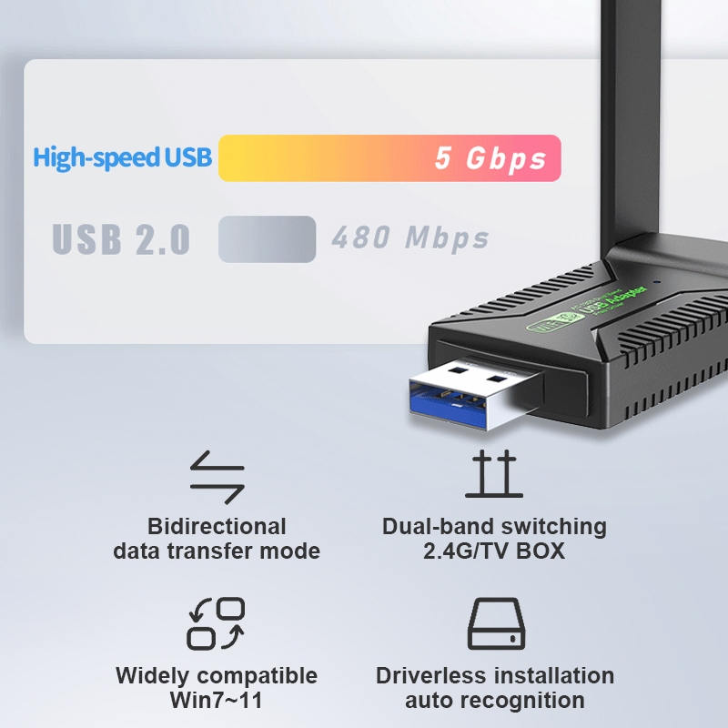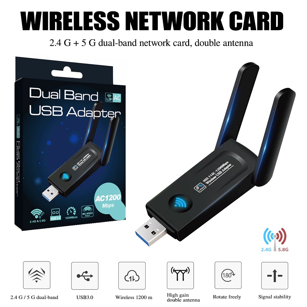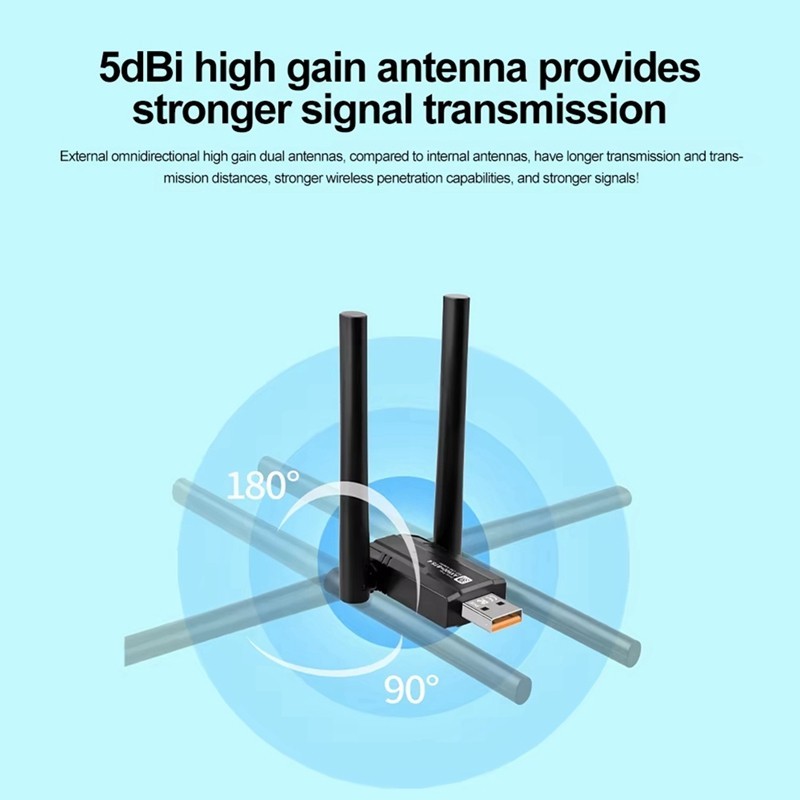 (5.0G-1200M)✨ตัวรับสัญญาณไวไฟ USB WIFI ดูอัลแบนด์ระยะไกล5.0G + 2.4GHz Speed1200Mbps USB3.0 ตัวรับสัญญาณไวไฟ