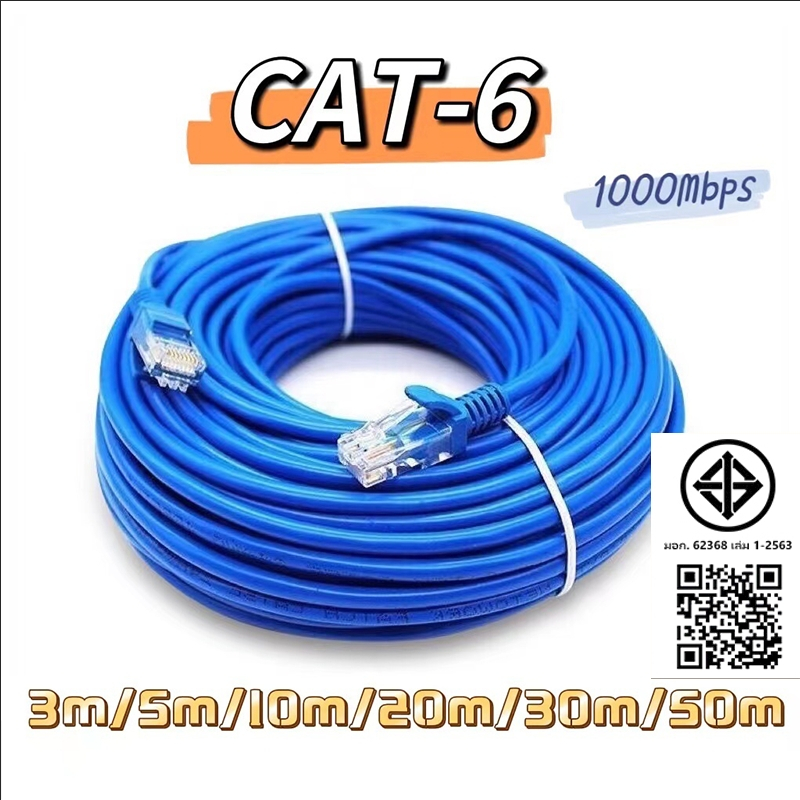 【รับประกันหนึ่งปี】สายแลน CAT6 Lan Cable RJ45 วิ่งเต็มสเปก1m/2m/3m/5m/10m/20m/30m สายเเลน ที่ดีที่สุด สาย LAN ความเร็วสูง