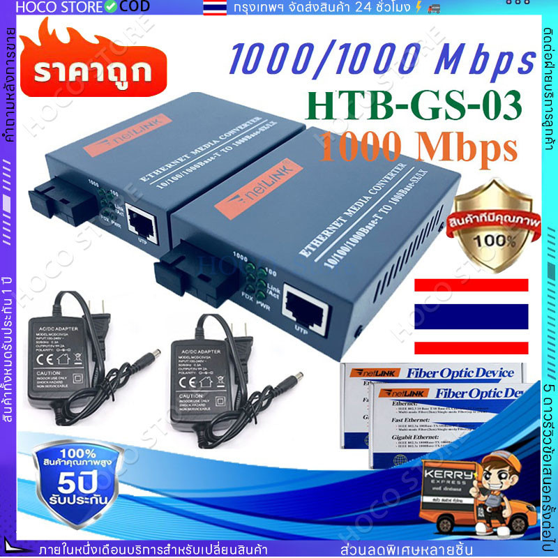 【COD】Media Converter Gigabit HTB-GS-03 10/100/1000 มีเดีย คอนเวอเตอร์ (A+B) 20KM/ netlink 1 คู่ A+B