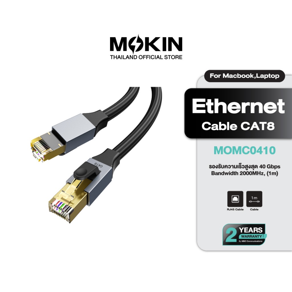 [ทักแชทรับโค้ดลับ] MOKiN สายแลน CAT8 สายอินเตอร์เน็ต RJ45 Ethernet Cable 40Gbps สำหรับคอมฯ PS5 เร็วเสถียร รุ่น MOMC0410
