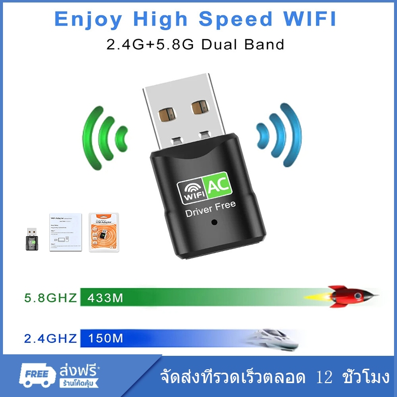 (ส่งจากไทย) ตัวรับสัญญาณ ไวไฟ USB Wifi รับได้ทั้งความถี่ AC 2.4 GHz และ 5 GHz ตัวรับสัญญาณ wifi