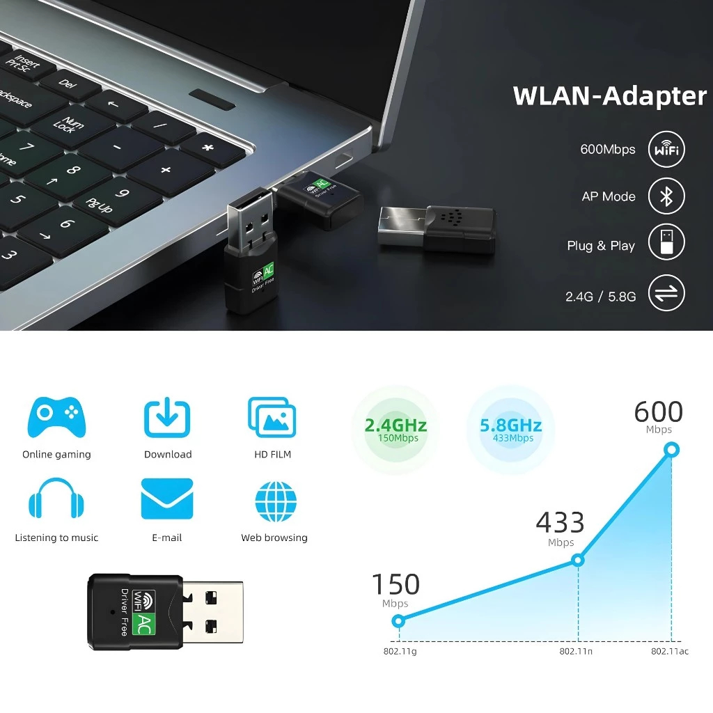 (5.0G-เขียว)รุ่นใหม่ USB WIFI 2.4GHz+5GHz ไดร์เวอร์ในตัว ไม่ต้องใช้แผ่น