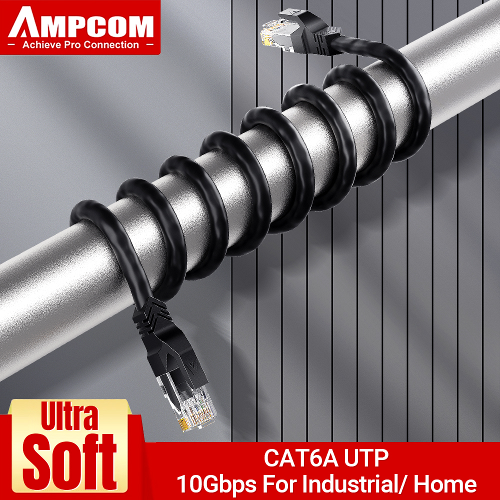 AMPCOM สายเคเบิลเครือข่าย CAT6A UTP/STP สำหรับประสิทธิภาพเครือข่ายที่เร็วแบบเร่ง – สายเราเตอร์ความเร็วสูง 10G 500MHz, ทองแดงไร้การรับป้องกัน, สีเทา/ดำ/น้ำเงิน, 0.5M-5M