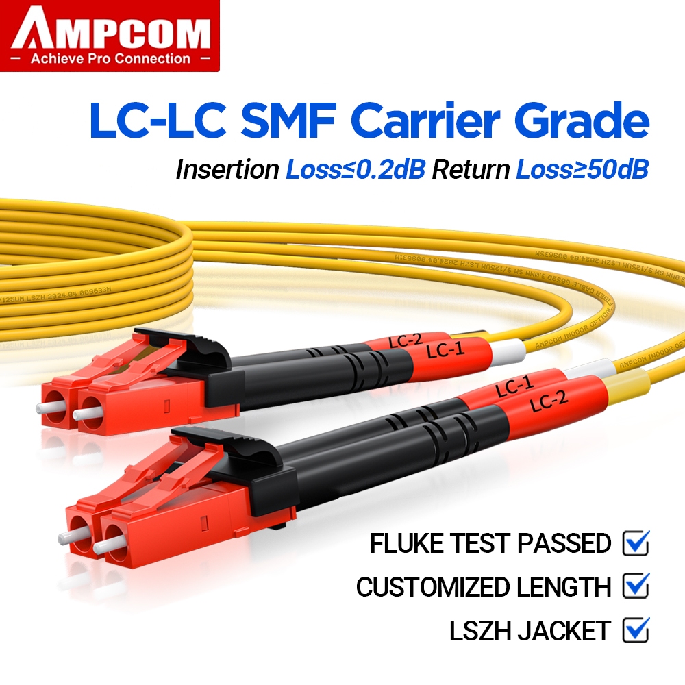 AMPCOM สายแพทช์ใยแสง LC LC แบบดูแปลกโหมดเดียว สายเชื่อมต่อใยแสง LC LC สำหรับโหมดเดียว สายเชื่อมต่อโหมดเดียวการสามารถปรับแต่งได้