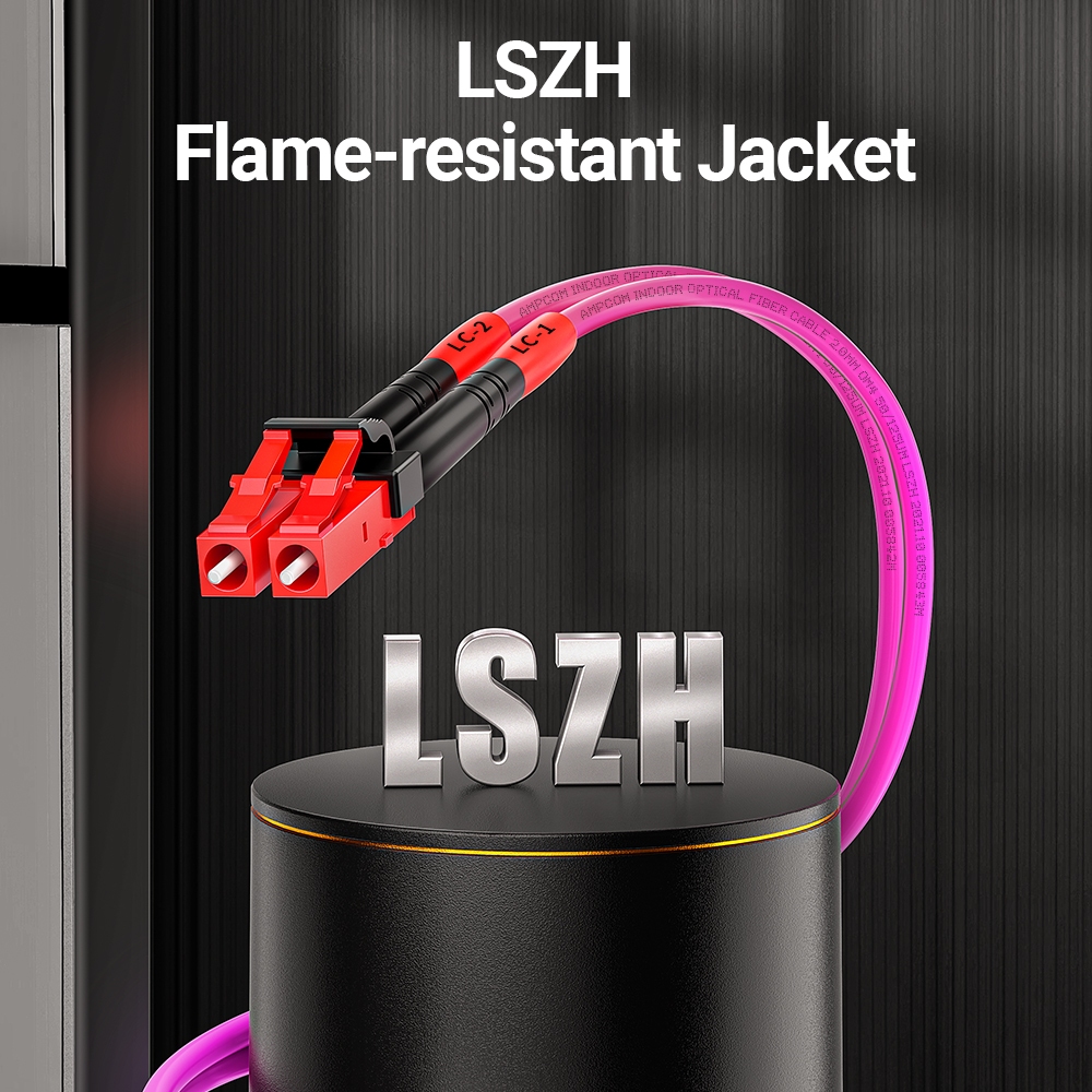 AMPCOM สายแพทช์ใยแสงแบบ OM4 LC ถึง LC UPC ใยแสงหลายโหมดแบบดูแปลก 50/125 แหล่งที่มาจาก LSZH สายแพทช์ใยแสงแบบใยแสงโหมดหลาย 2.0 มม. รองรับการปรับแต่ง
