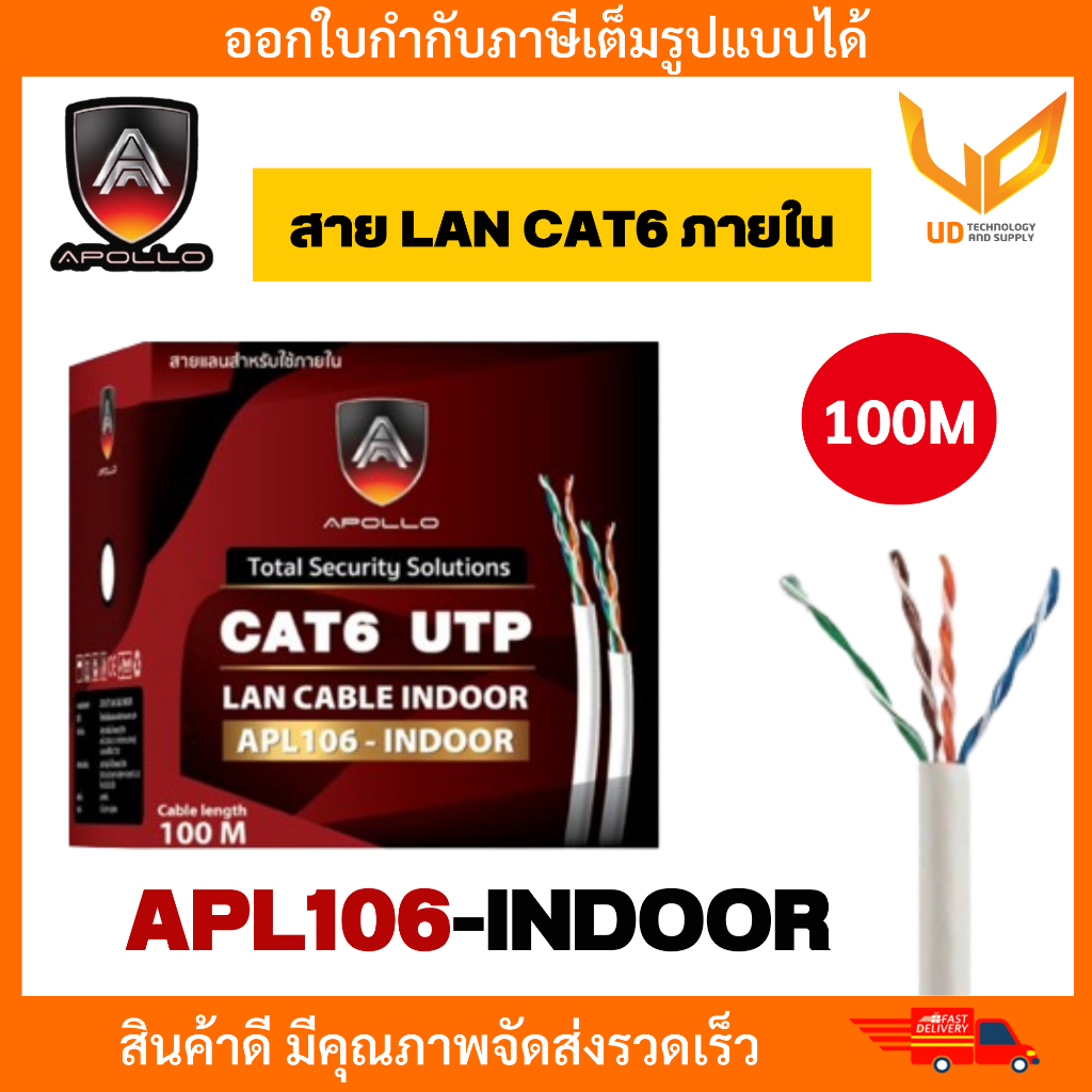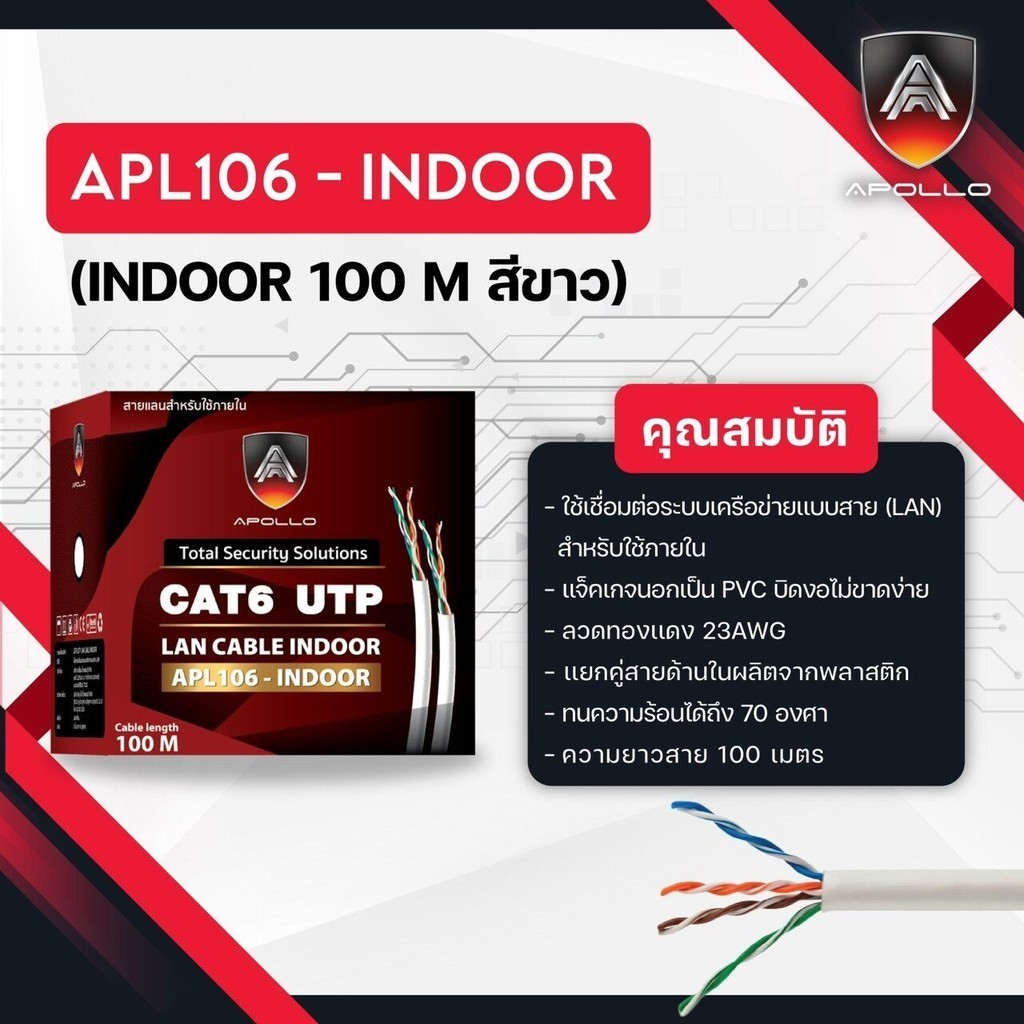 APOLLO สายแลน CAT6 UTP Cable APL106-INDOOR (100m./Box) สำหรับภายในอาคาร สายสีขาว พร้อมส่ง