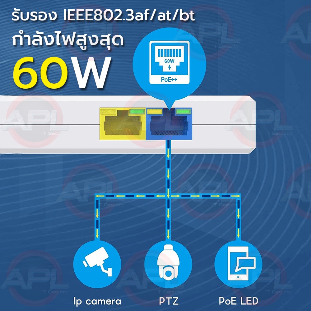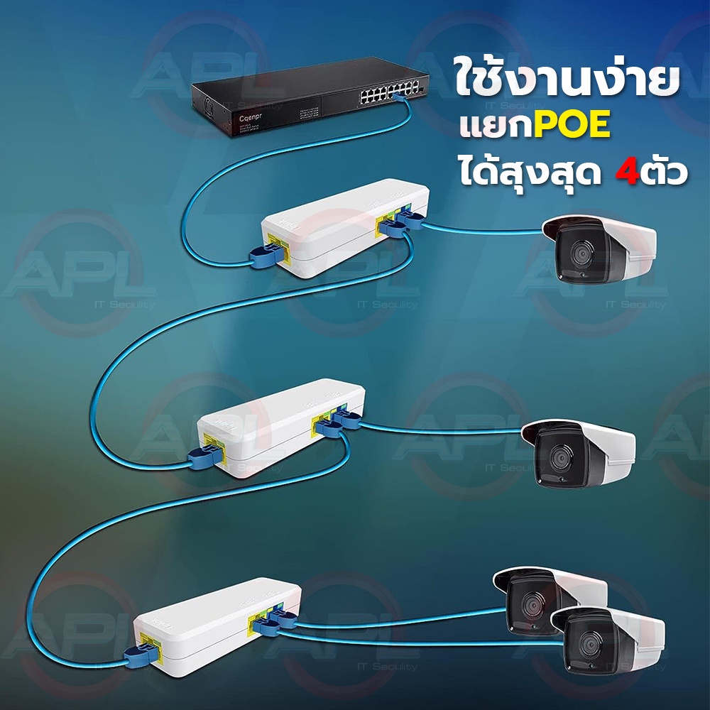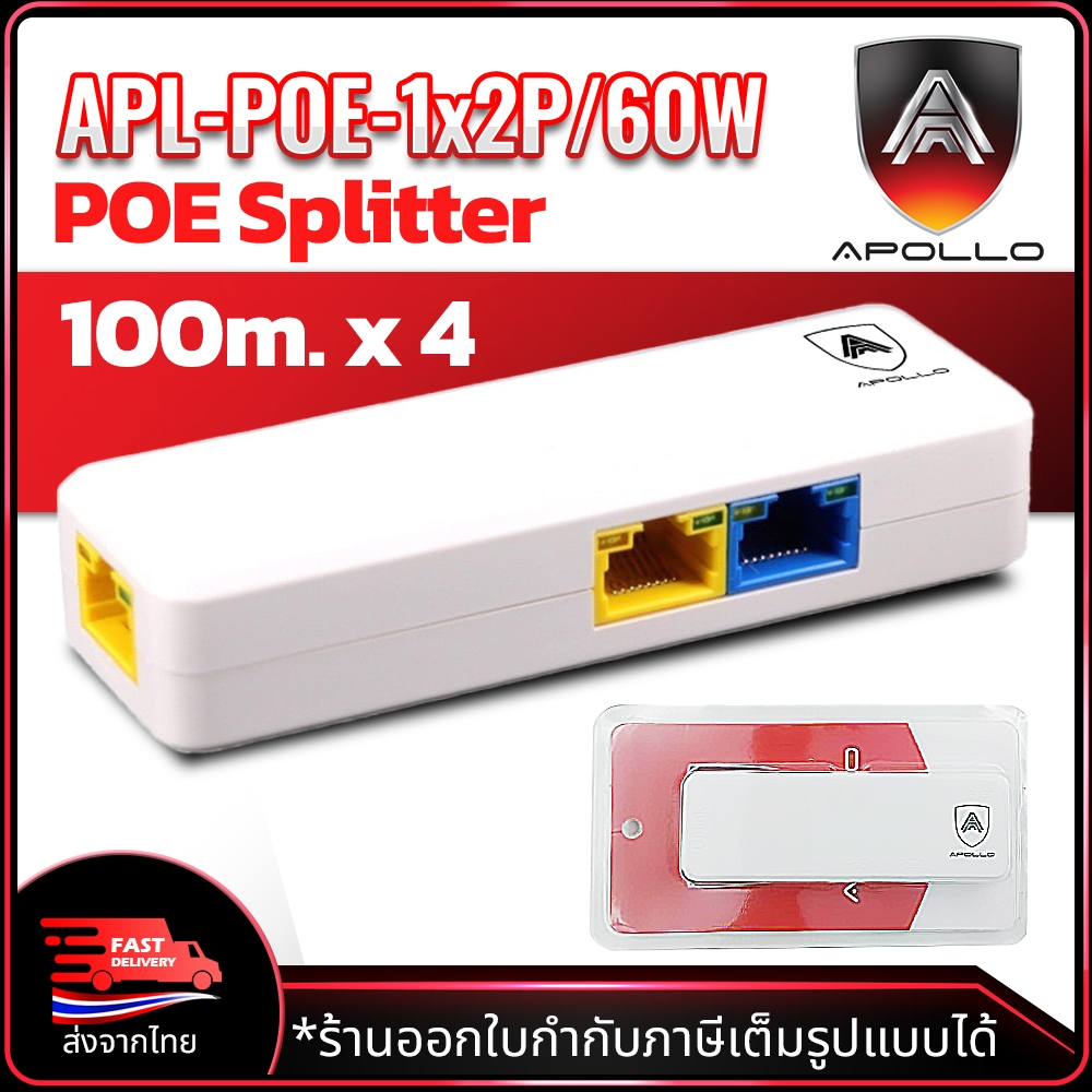 APOLLO รุ่น APOE-05 APL-POE-1x2P/60W ตัวแยก POE 1 ออก 2 RJ45 POE Splitter สําหรับกล้องวงจรปิด CCTV
