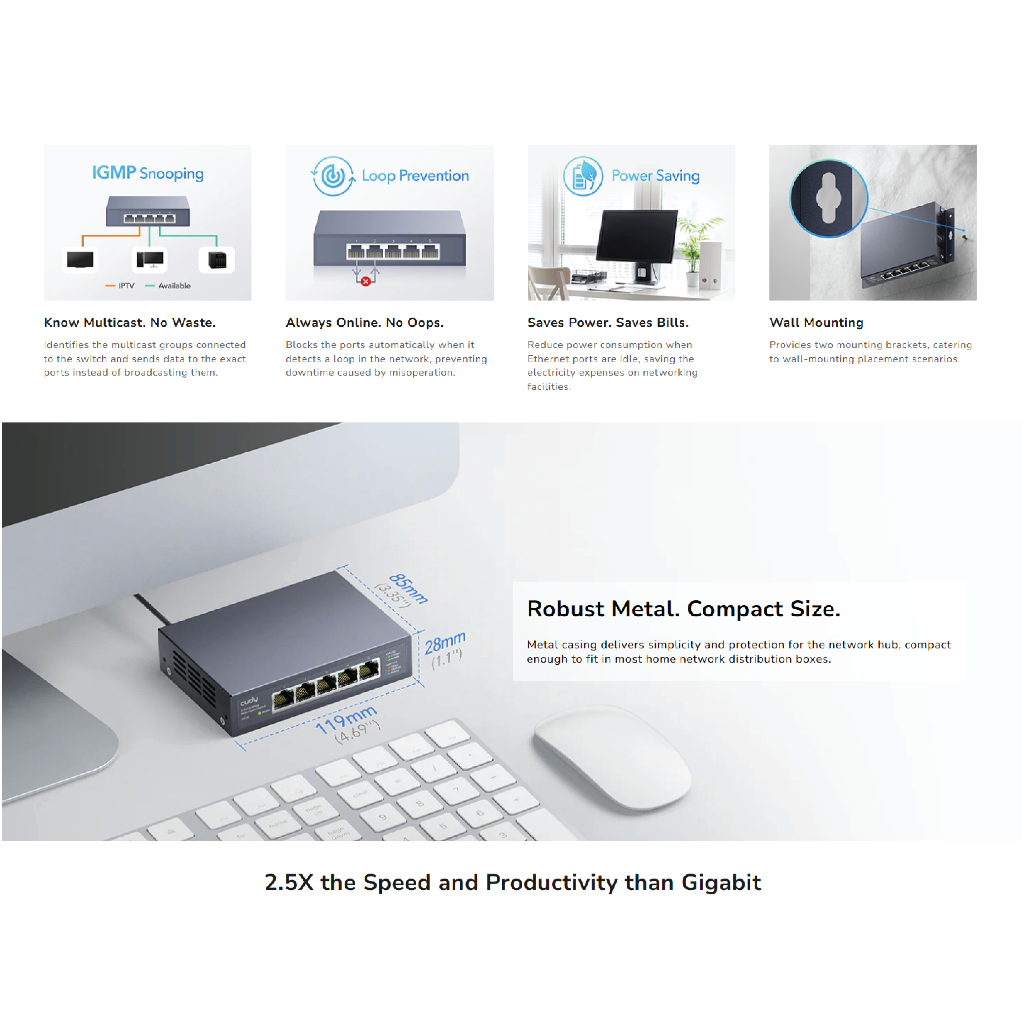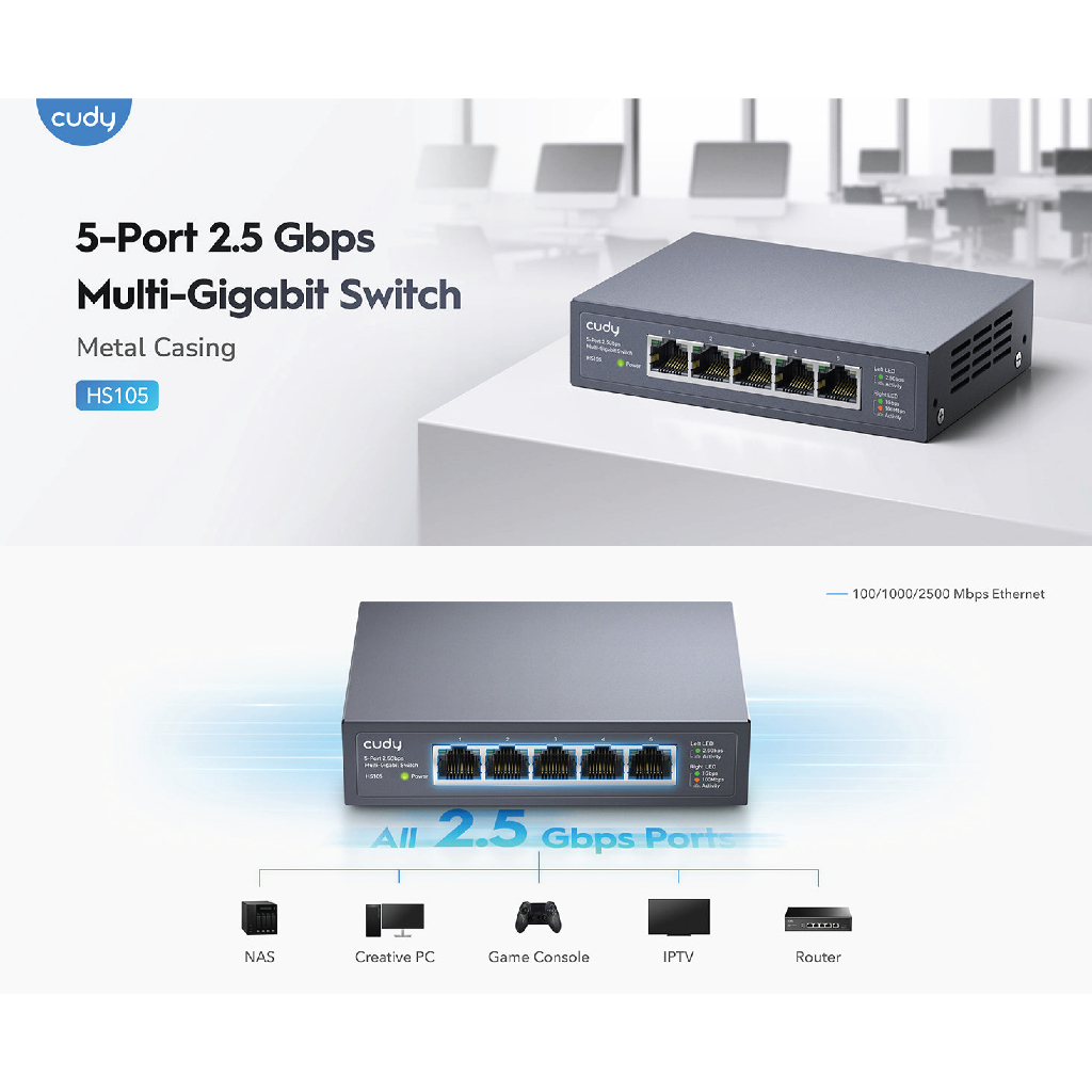Cudy HS105 Switch 2.5G (5 port) Unmanaged Plug and Play Multi-Gigabit 10/100/1000/2500 Mbps