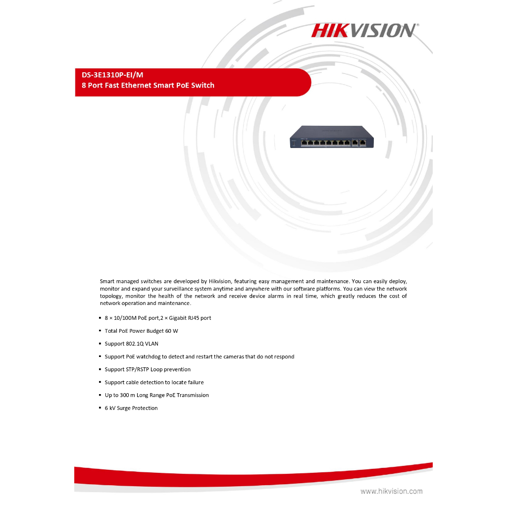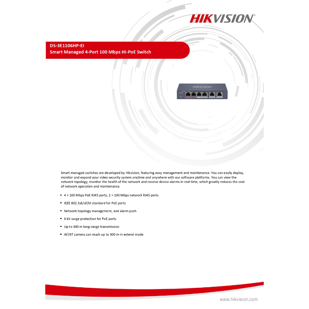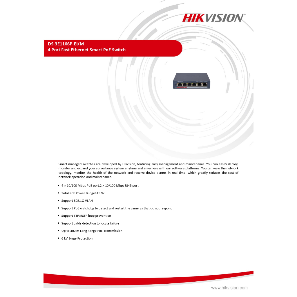 Hikvision HUP POE Switch (DS-3E1106HP-EI,DS-3E1310HP-EI,DS-3E1106P-EI/M,DS-3E1310P-EI/M) สินค้ารับประกัน 3ปี