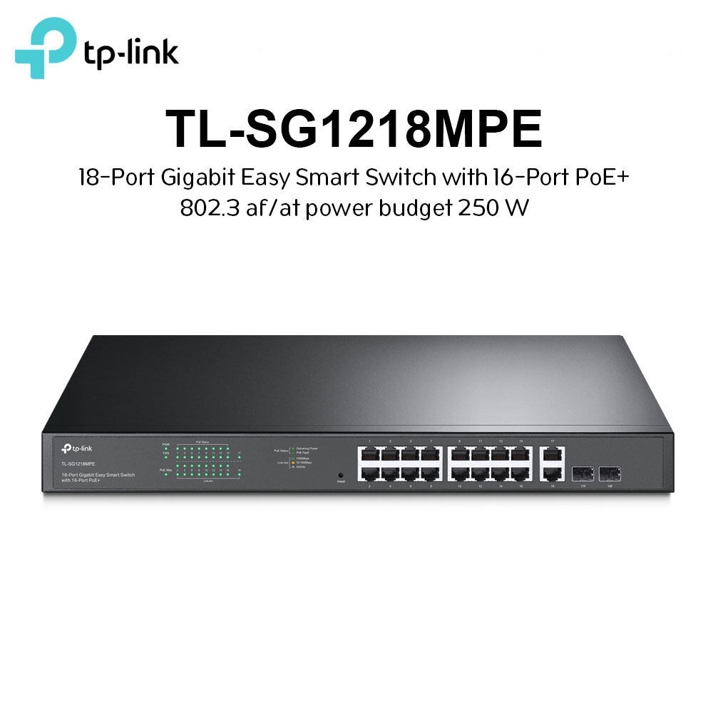 TP-LINK (TL-SG1218MPE) 16-Port Gigabit Easy Smart PoE+ Switch with 2 SFP Slots