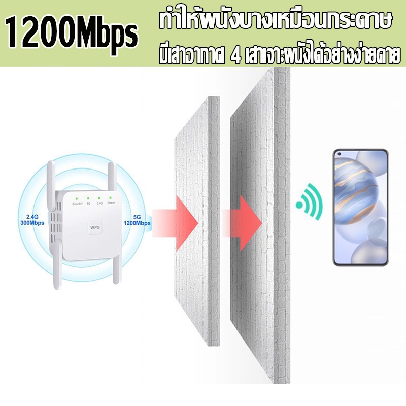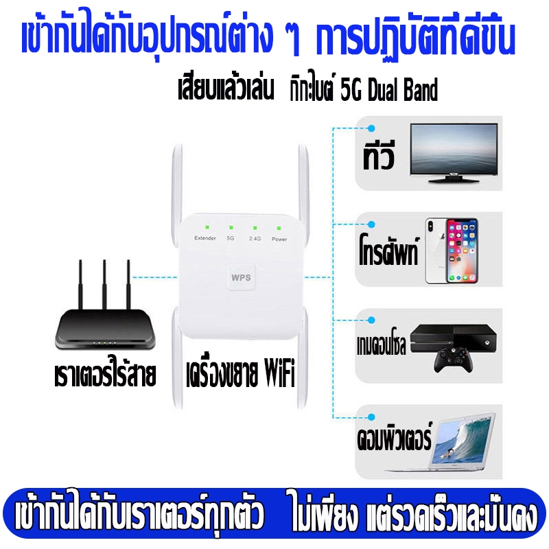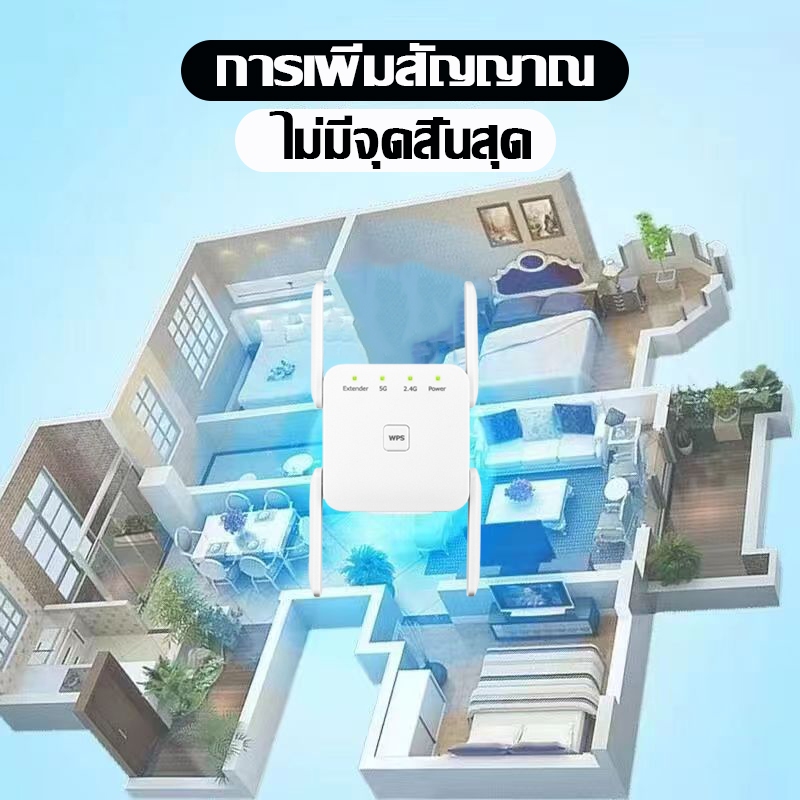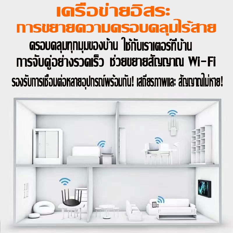 การขยายสัญญาณ 500㎡ ตัวขยายสัญญาณ wifi 5g ตั้งค่าง่าย แค่เสียบเข้า Dual Band 2.4Ghz / 5GHz 12000Mbps สัญญาณ WiFi เต็มรูปแบบ สัญญาณไม่หลุด WiFi Repeater