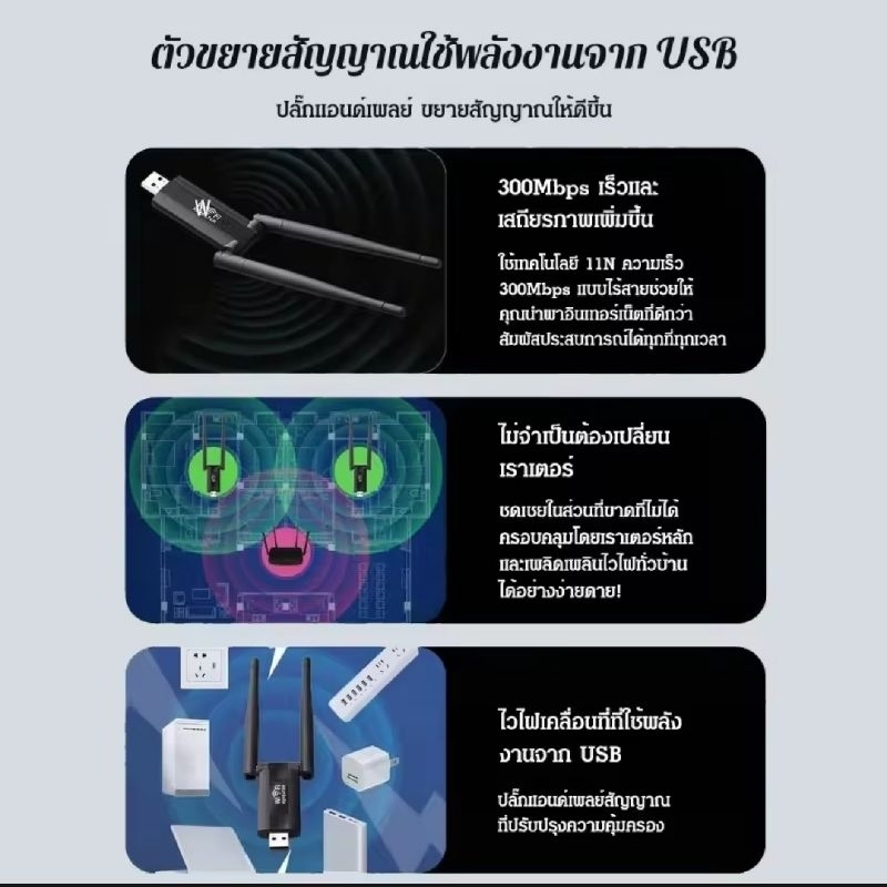 เครื่องขยายสัญญาณไวไฟ ตัวขยายสัญญาณ WIFI ตัวรับสัญญาณ WIFI ขยายเครือข่ายไร้สาย