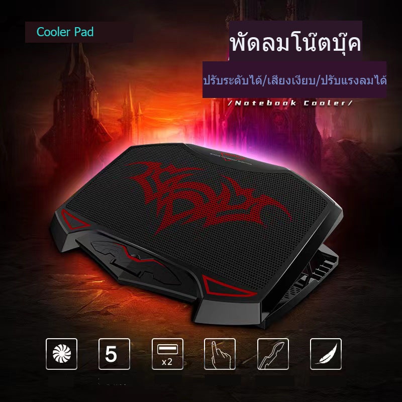 พัดลมโน๊ตบุ๊ค พัดลมระบายความร้อน หม้อน้ำโน๊ตบุ๊ค แท่นวางคอมพิวเตอร์แบบปรับได้ Notebook Cooler Pad