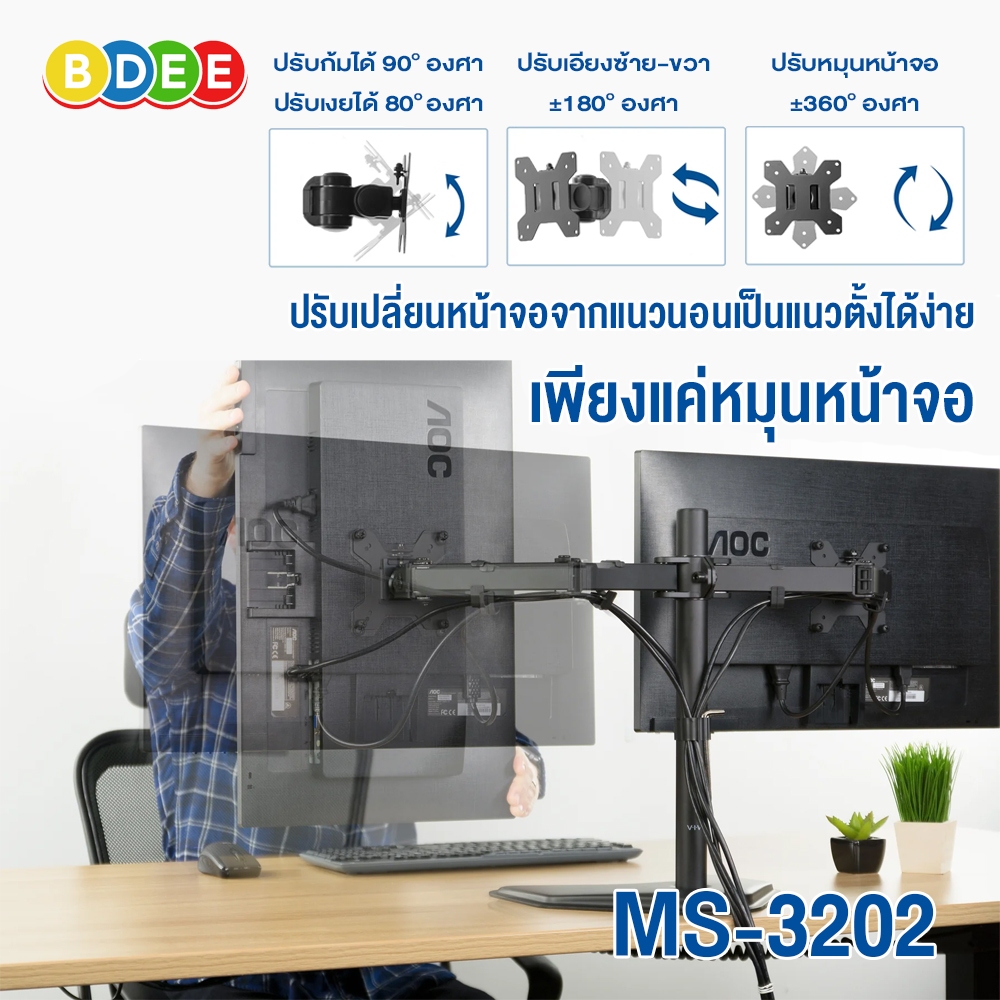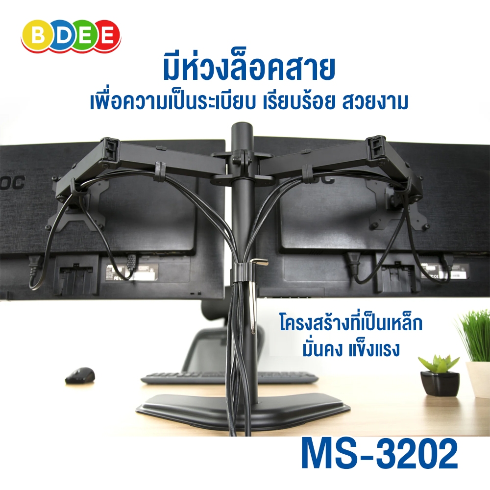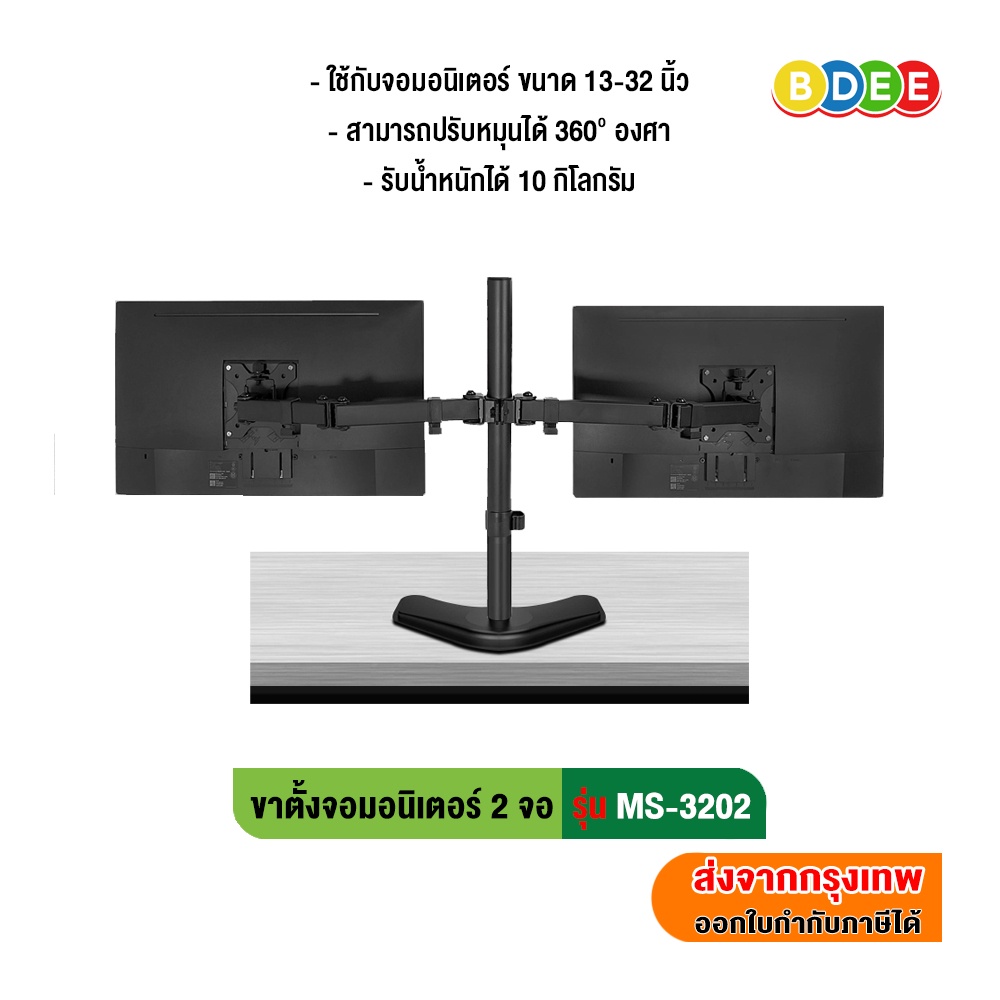 BDEE ขาตั้งจอมอนิเตอร์ 2 จอ รุ่น MS-3202 (แบบวางบนโต๊ะ) รองรับจอขนาด 13-32 นิ้ว (High Quality)