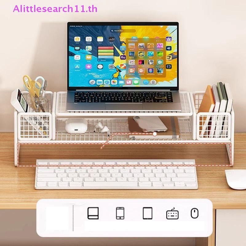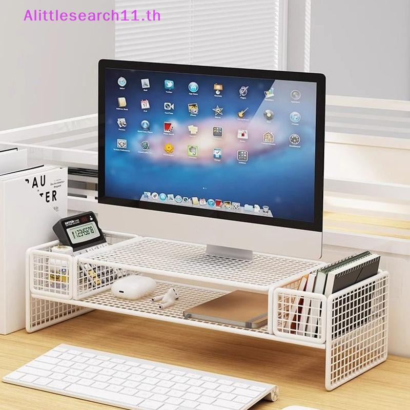 Alittlesearch11 Double-Deck คอมพิวเตอร์ Monitor Riser ผู้ถือ PC หน้าจอขาตั้งวงเล็บเดสก์ท็อปแล็ปท็อปคีย์บอร์ดเมาส์จัดเก็บปากกาคอนเทนเนอร์ TH
