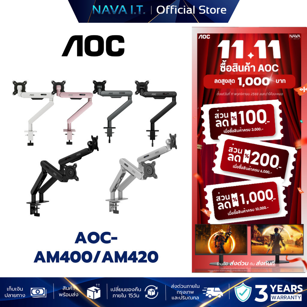 AOC แขนจับจอ AM400/AM420 Desktop Dual Monitor Arm Holder Arm สำหรับ 17 “- 34”