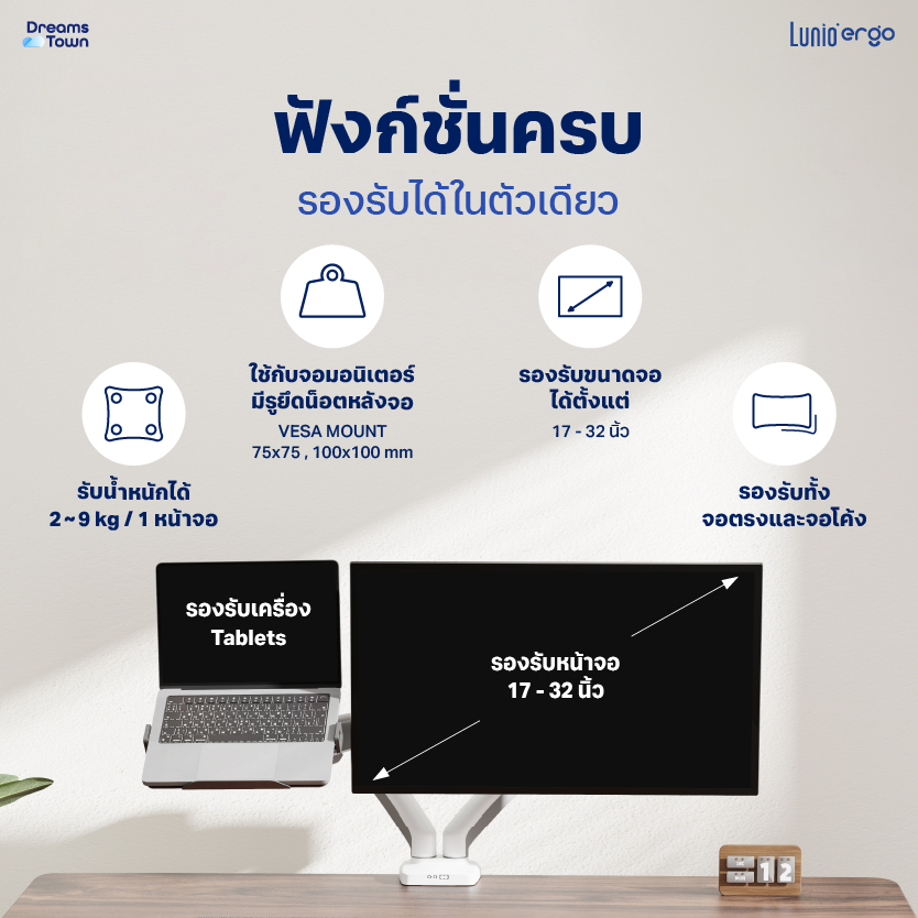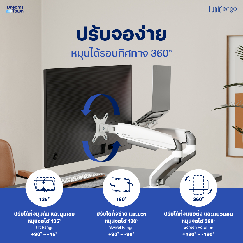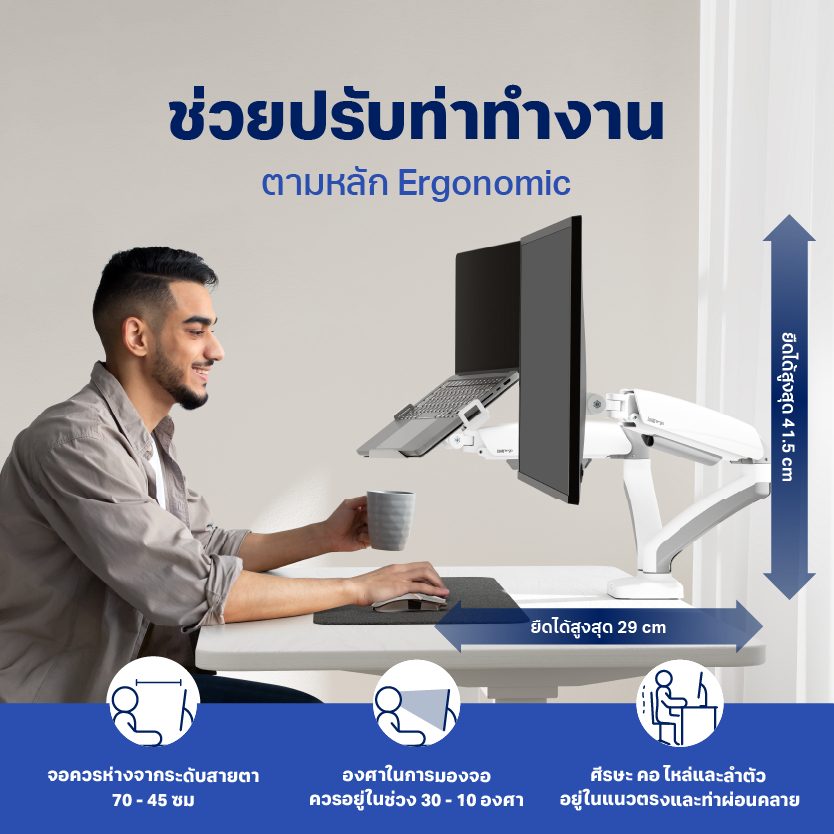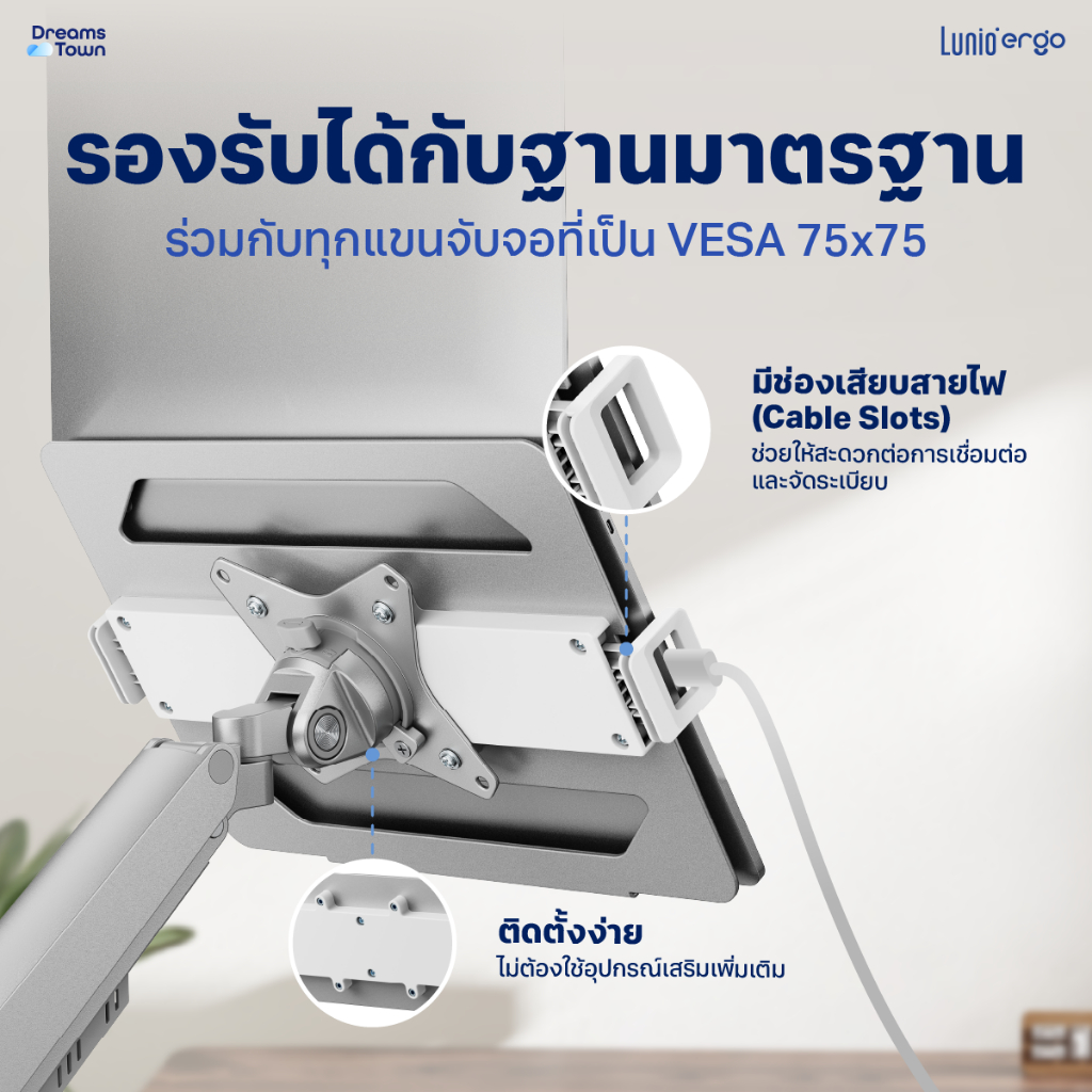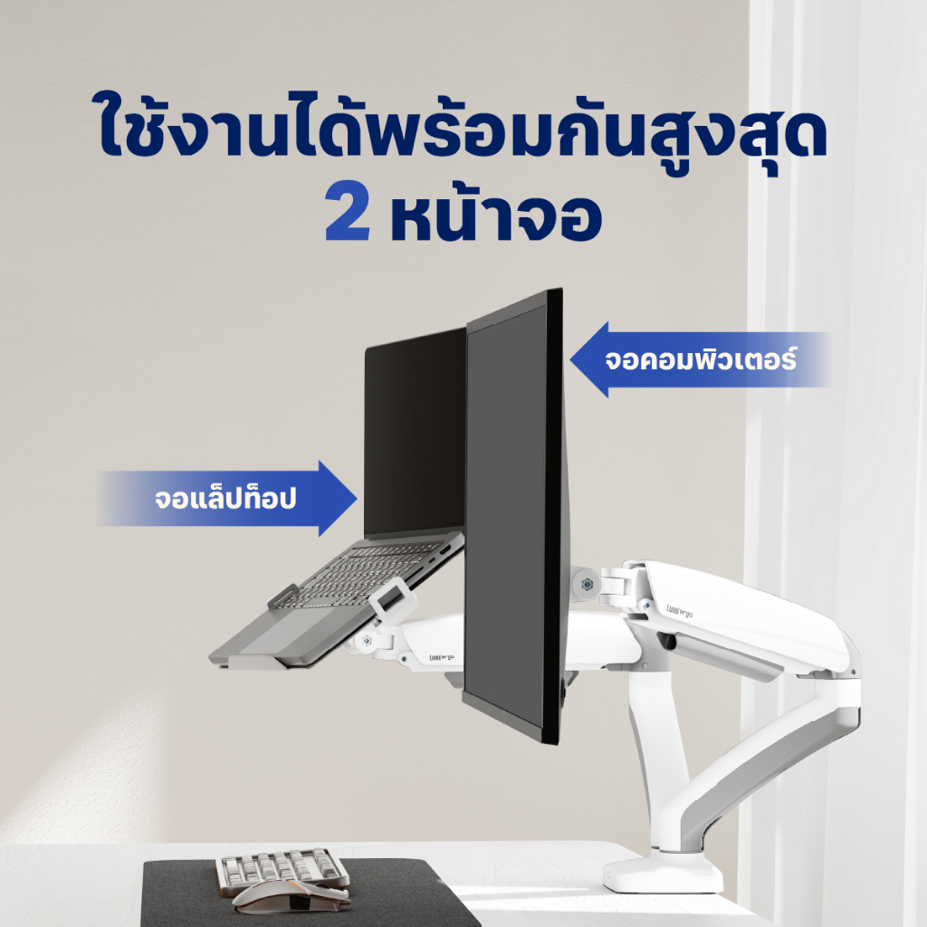 [เซ็ตสุดคุ้ม] Lunio Ergo Monitor Arm Cybot สีขาว แขนจับจอคอม มาพร้อม แท่นวางโน็ตบุ๊ค แลปท็อป Lunio Ergo Cypad สีเงิน