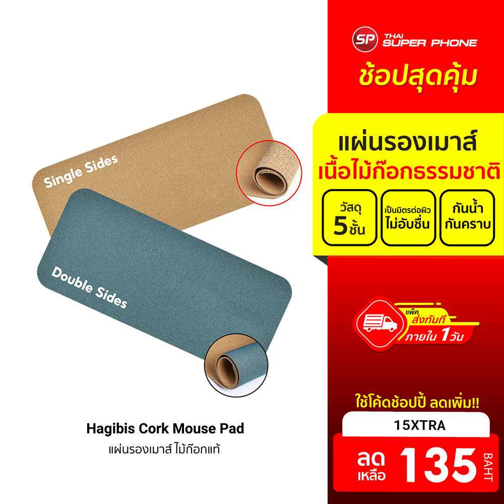 [ลดเหลือ 135] Hagibis Cork Mouse Pad WMD01 / WMD02 แผ่นรองเมาส์ ไม้ก๊อกแท้ ขนาด 20×30 / 30×62 / 42×90 ซม.
