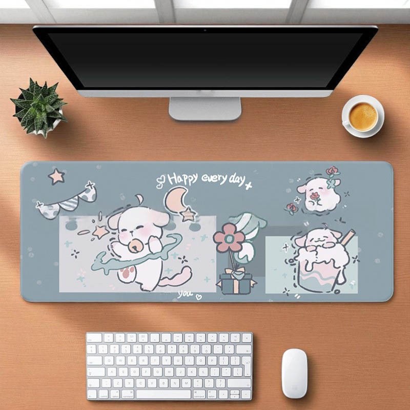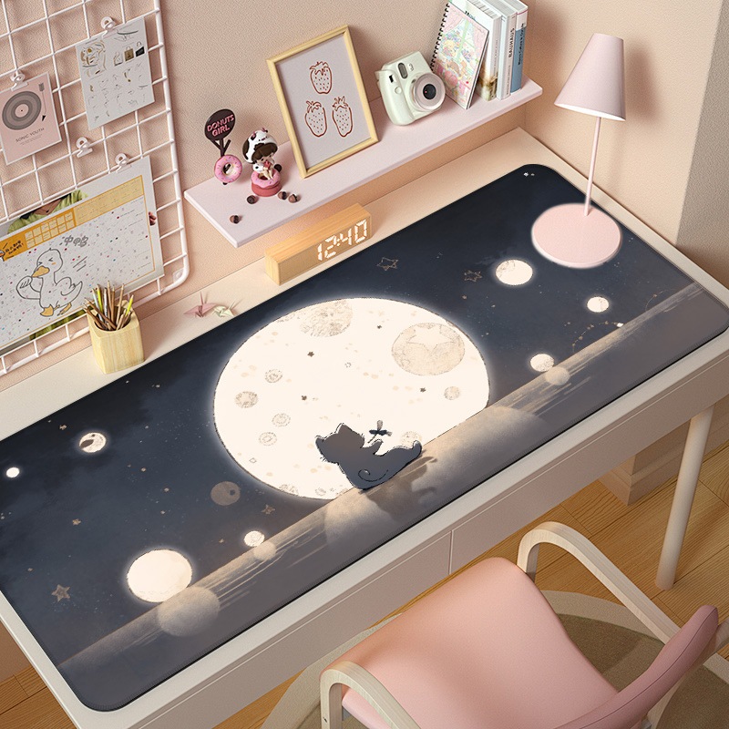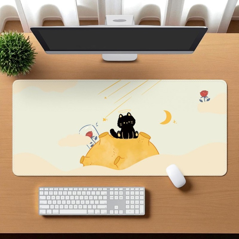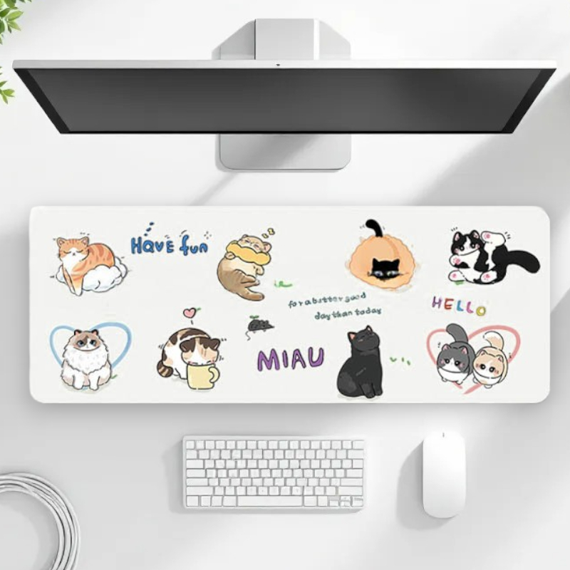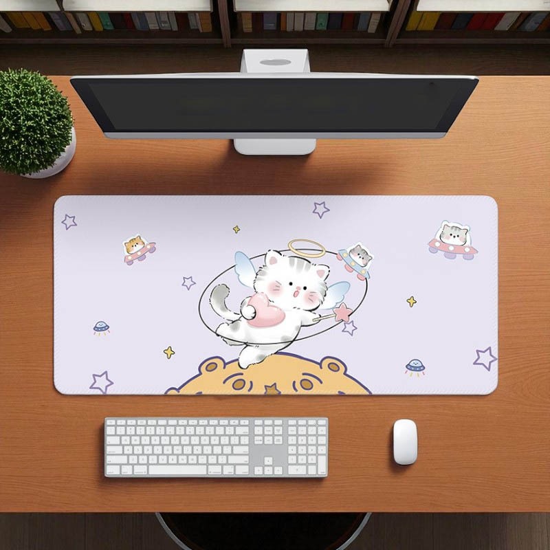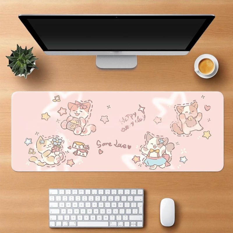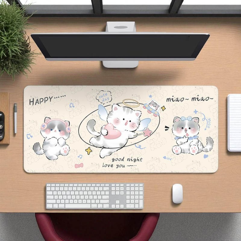 [พร้อมส่ง] แผ่นรองเมาส์ การ์ตูนแมวน่ารัก งานเย็บขอบ ขนาดใหญ่ 80×30 ซม. (หนา 3 มม.) Biangels