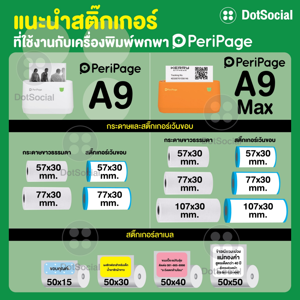 (สั่งขั้นต่ำ 3 ม้วน) สติ๊กเกอร์เว้นขอบหน้ากว้าง 10.7 cm สำหรับ Peripage A9 Max (107×30 mm.)