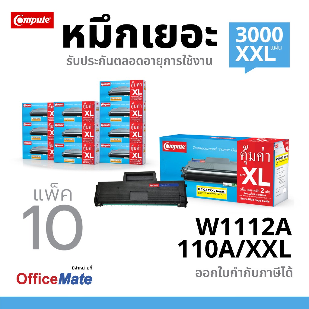 (แพ็ค10ตลับ) ตลับหมึกดำ COMPUTE สำหรับ HP 110A / HP110A XXL (W1112) เพิ่มหมึก2เท่า ดำเข้มคมชัด