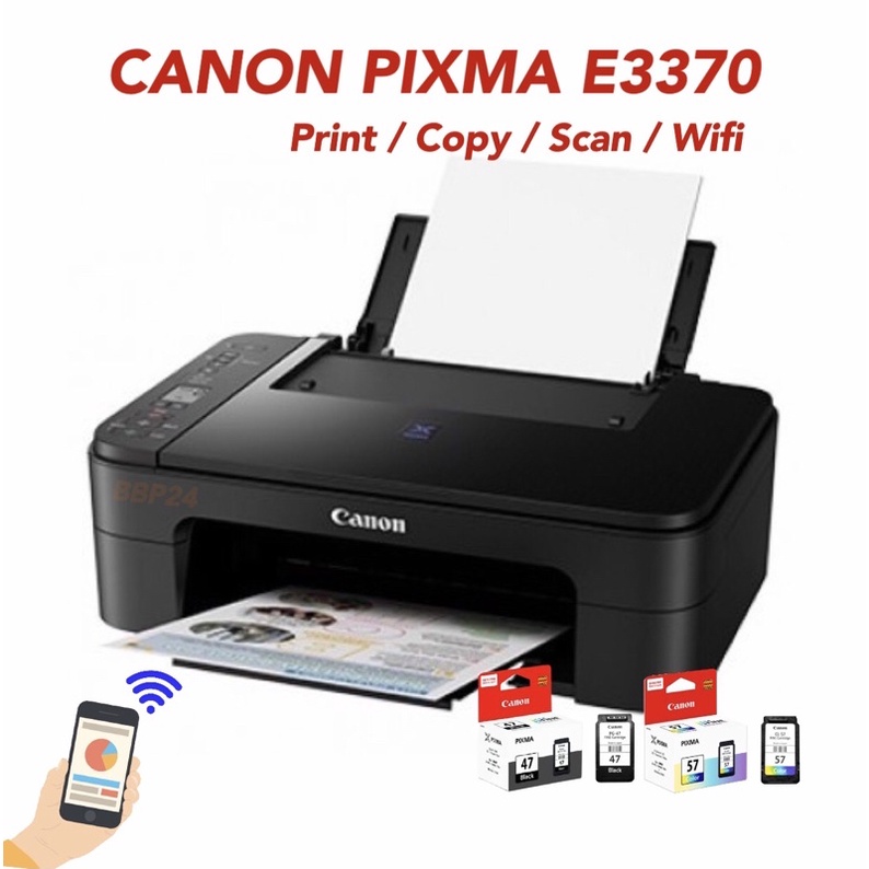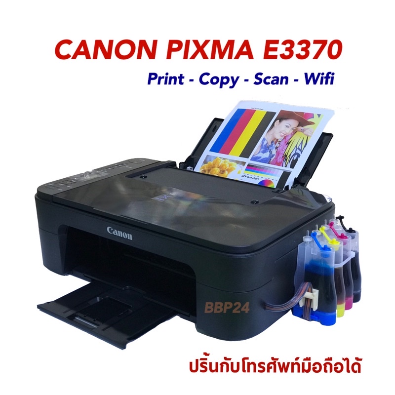 Printer Canon Pixma E3370 + InkTank Print Scan Copy Wi-Fi Direct (ปริ้นกับโทรศัพท์มือถือได้)